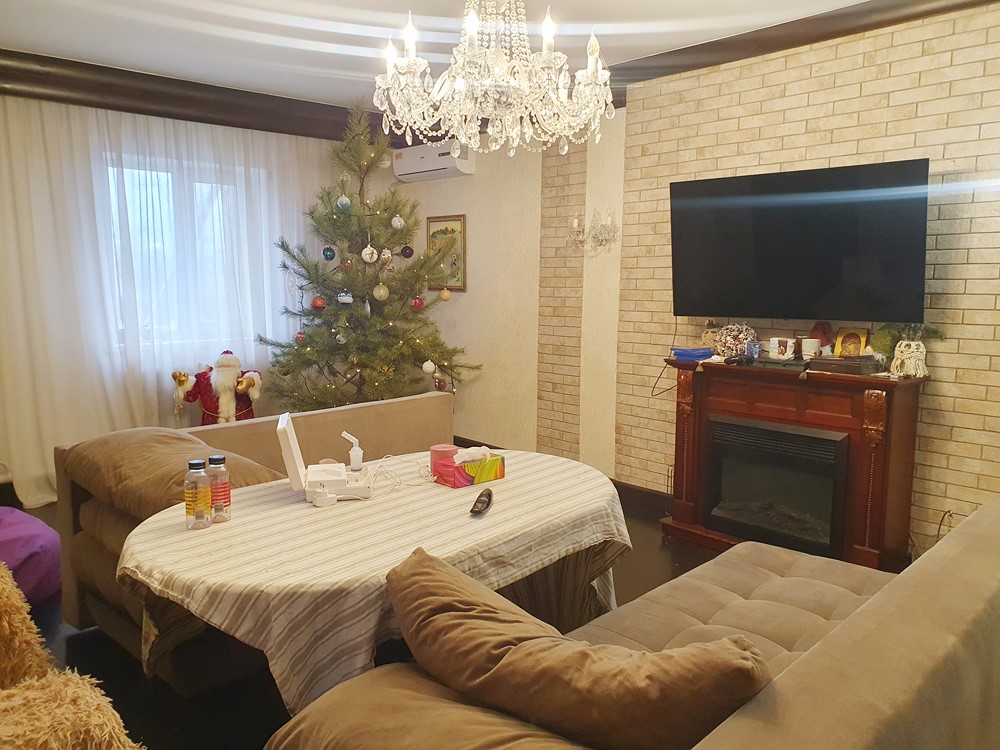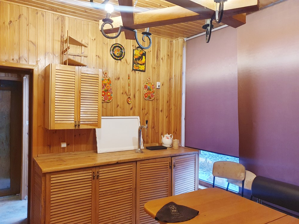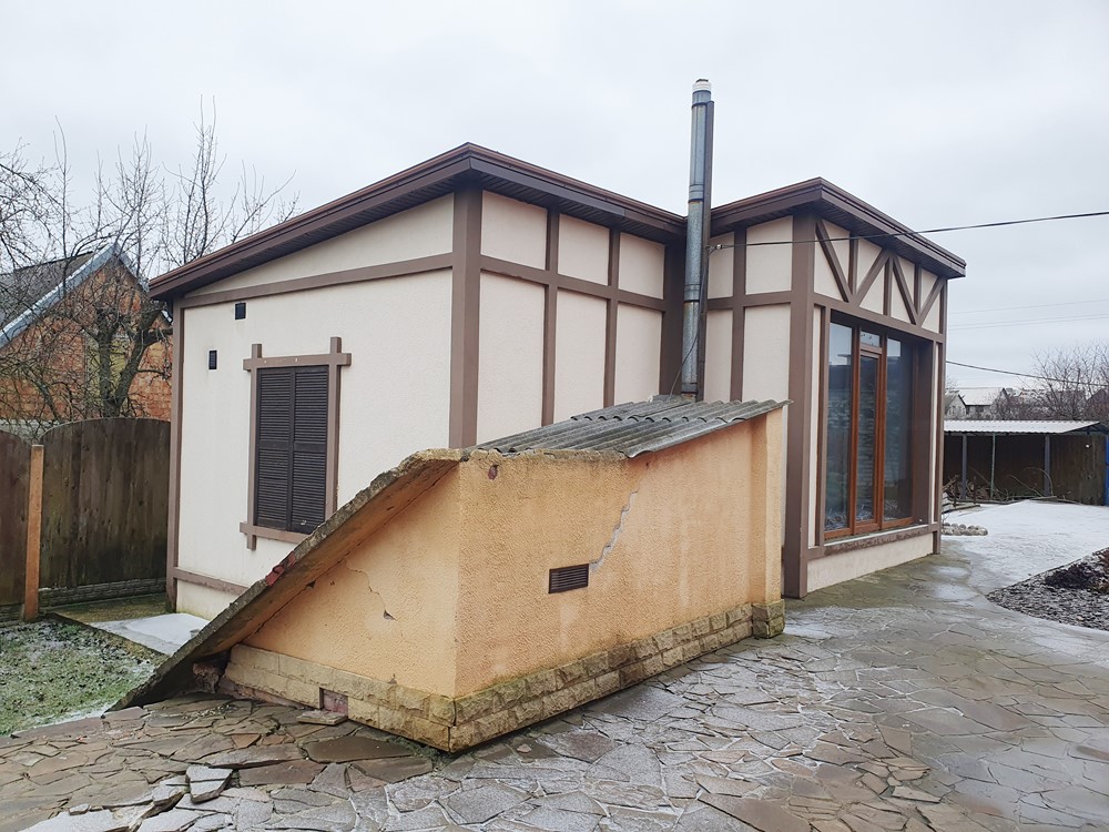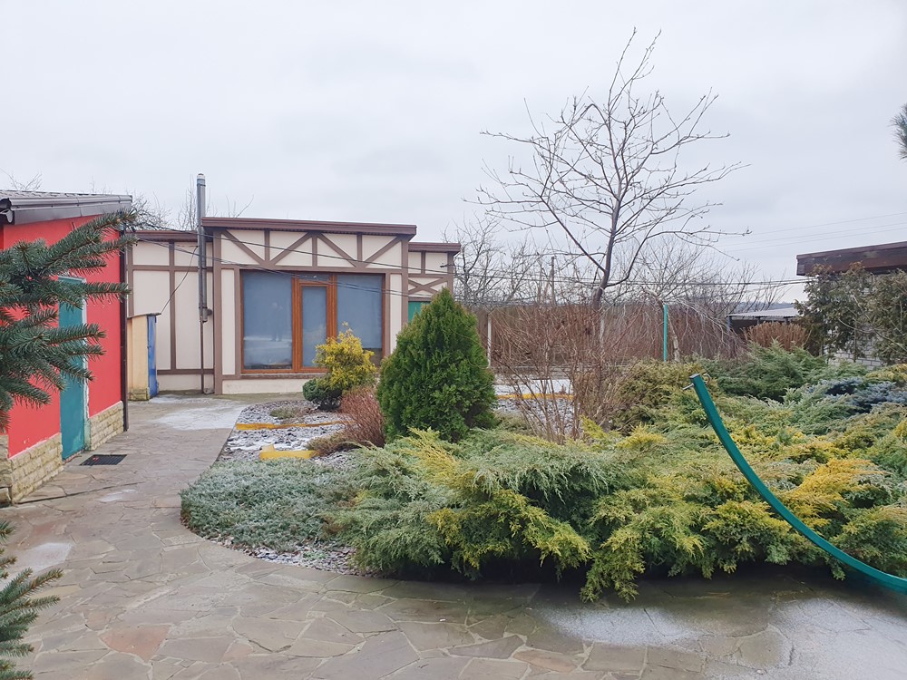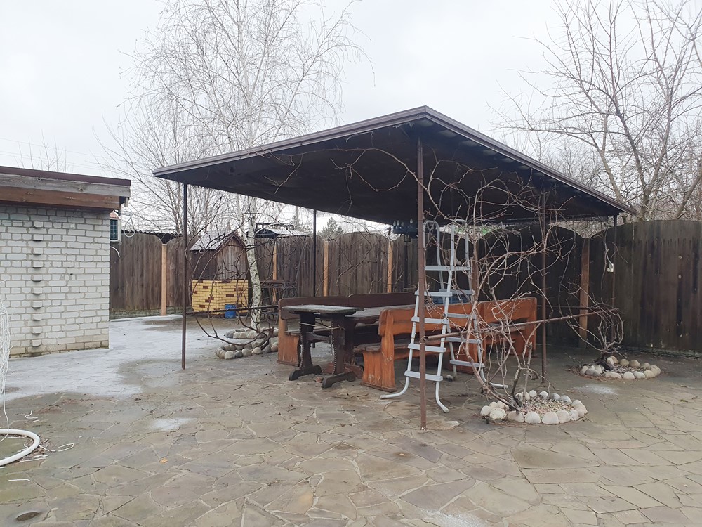 151,2м.кв. в 1-м этаже + отдельный вход на горище, стены кирпичные + утеплен, газ, свет 380V, заведено 15 киловатт. крыша метало черепица, кондиционеры, бойлер, спутниковые антенны. Планировка: гостиная с действующим камином, кухня, 7 комнат, 3 санузла, 3 коридора, 2 кладовки.