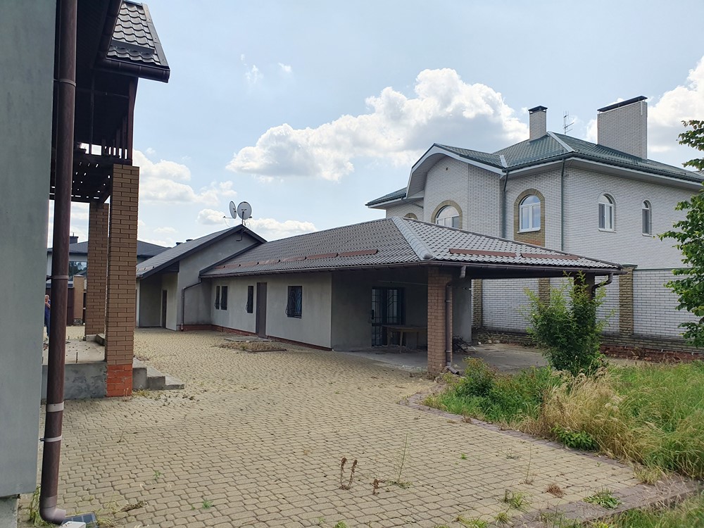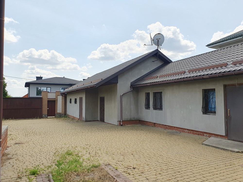 300м.кв. 2-х этажный, крыша метало черепица, стены в два кирпича + утеплен пенопластом, электричество, городская вода, канализация, газ, все рядом