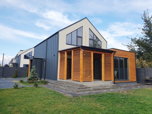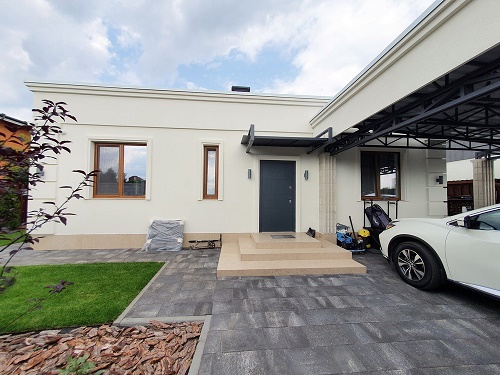 140м.кв. 1-но этажный + 30м.кв. терраса, стены газобетон, панорамные металлопластиковые окна, высокие потолки, электрическое отопление тепловым насосом, модный современный ремонт, встроенная мебель и вся необходимая бытовая техника. Планировка: гостиная – студия с островом и выходом на террасу с бассейном, 3 спальни, 2 санузла, 2 гардеробные, топочная с отдельным входом с улицы, холл, не большая подвальная часть. Дом совершенно новый, никто не жил. В данный момент внутри закончен ремонт и интерьер наполняется мебелью, освещением, шторами и всеми необходимыми аксессуарами.