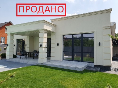 165м.кв.1-но этажный, стены газобетон, металлопластиковые окна + ролеты, крыша натуральная керамическая, газ, вода городская, теплые полы, солнечные панели, интернет, видеонаблюдение и так далее... Планировка: Кухня – студия с выходом на террасу и бассейн, мастер спальня с двумя гардеробными, детская спальня, кабинет, санузел, топочная. В доме выполнен современный очень качественный ремонт от известных мировых брендов, встроенная мебель и бытовая техника, мягкая мебель.