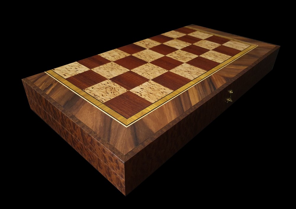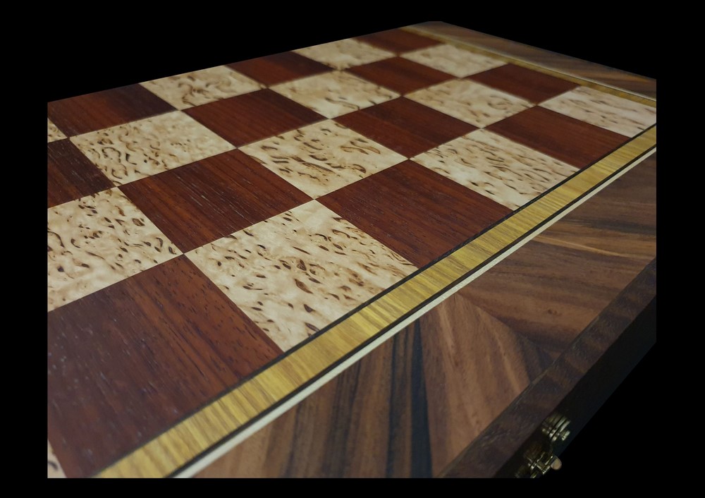 Складная Шахматная доска ручной работы из натуральных сортов цветной древесины. Техника – маркетри.
