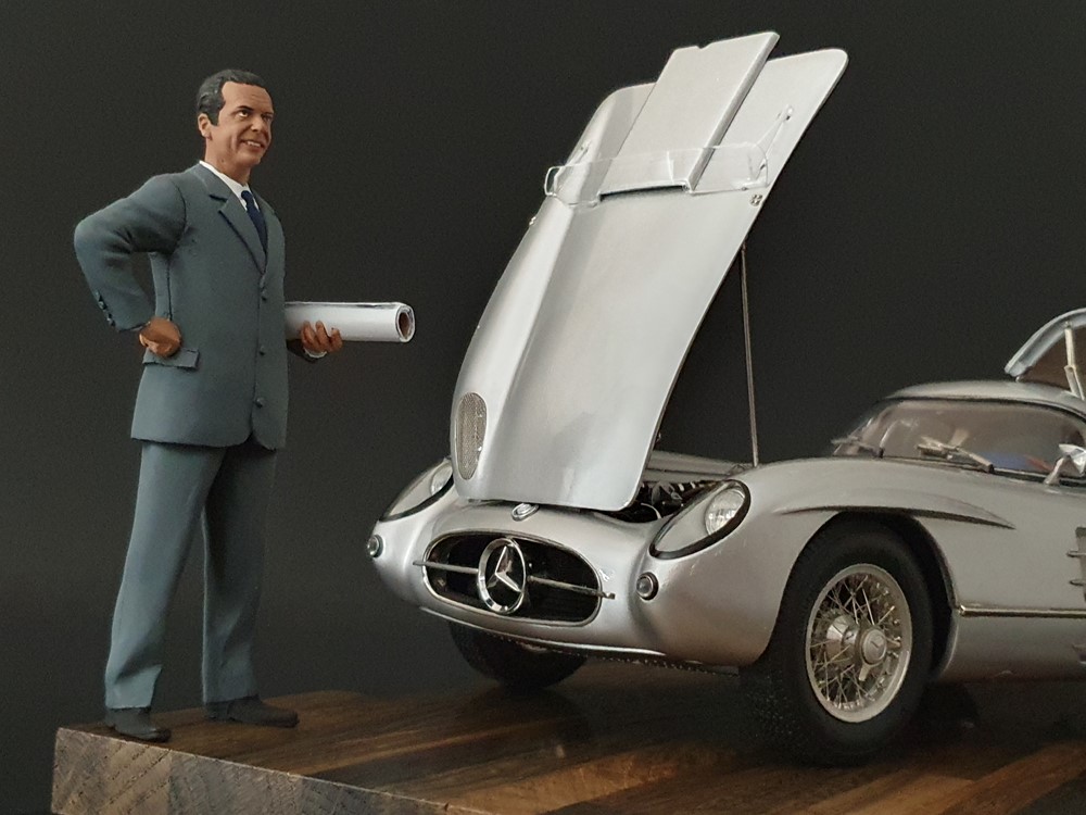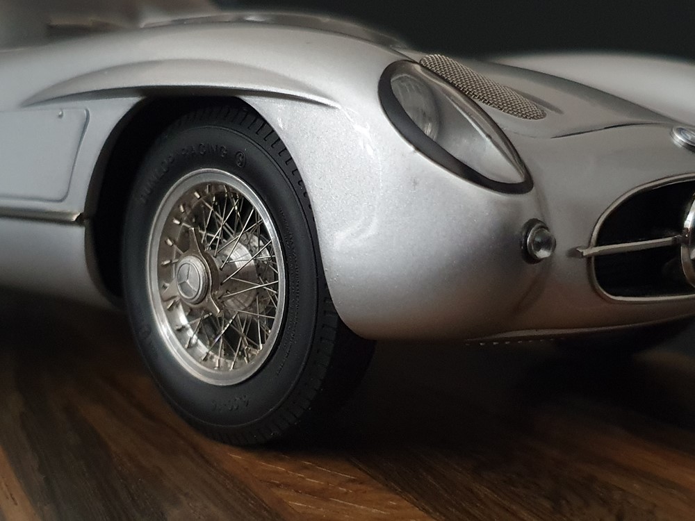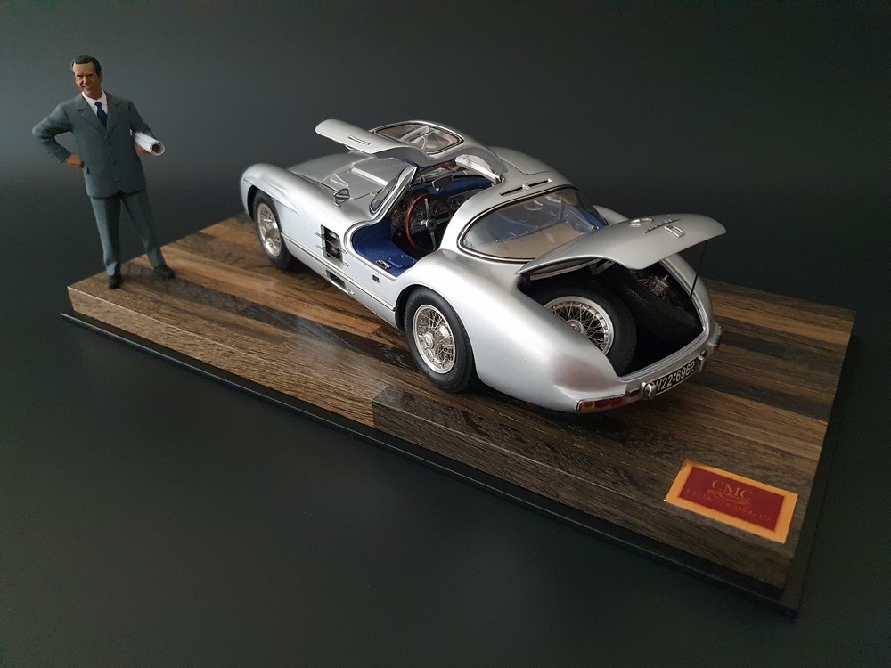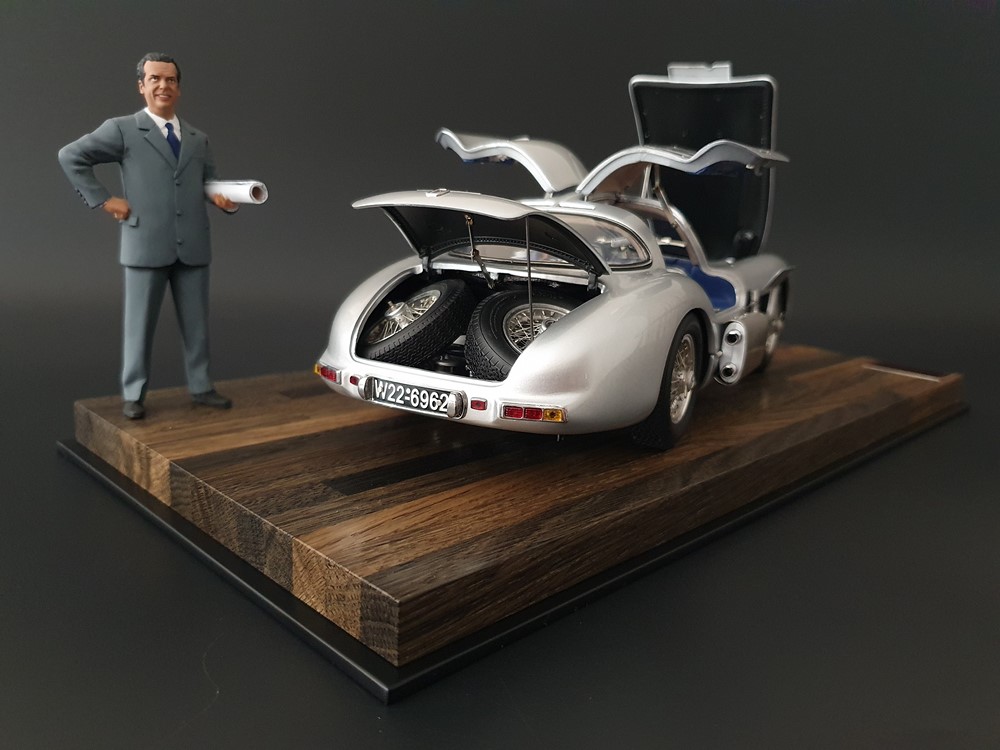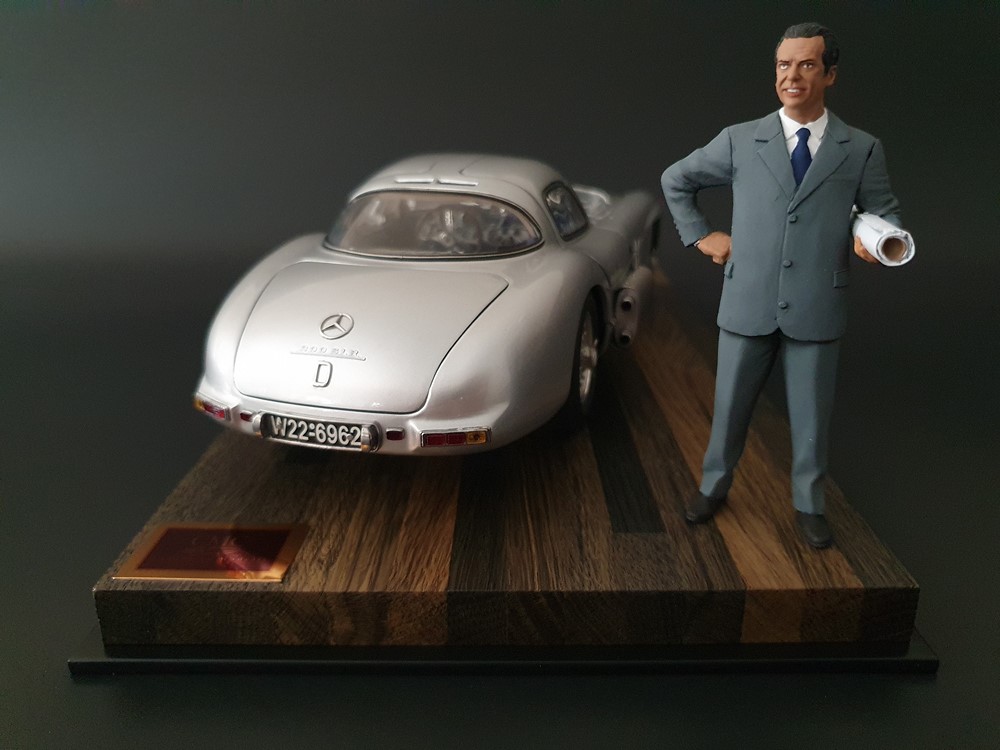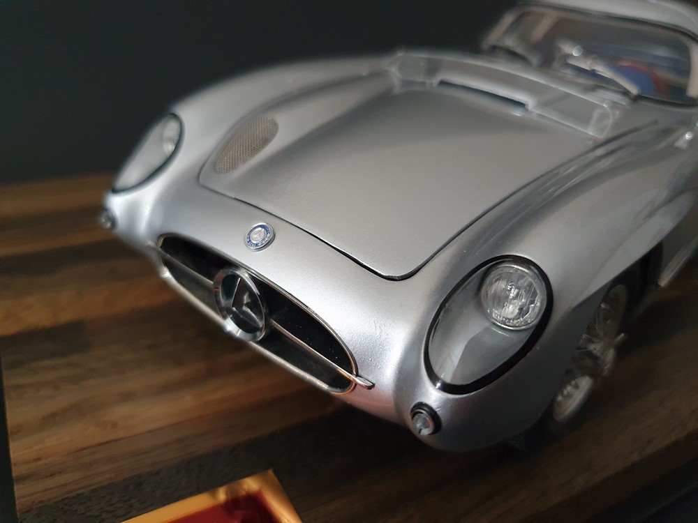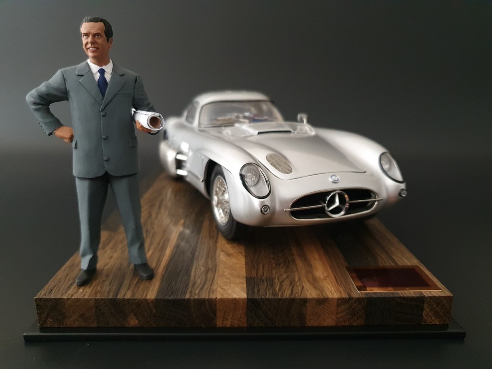 История: Когда Рудольф Уленхаут, архитектор гоночного автомобиля 300 SLR, был на Mille Miglia 1955 года, чтобы наблюдать за успехами Mercedes, он также размышлял над идеей оснастить гоночный автомобиль 300 SLR закрытым верхом для будущих гонок на выносливость. Его размышления воплотились в форме гоночного купе с характеристиками, с которыми не мог сравниться ни один другой дорожный спортивный автомобиль. Двухместный автомобиль разогнался до скорости 290 км/ч во время испытаний на закрытом участке автомагистрали за пределами Мюнхена. Впечатленный его необычайными характеристиками на пересеченной местности протяженностью 3500 км (более 2000 миль), репортер-испытатель швейцарского журнала Automobil Revue сказал следующее: «Мы едем на машине, которой требуется всего лишь секунда, чтобы обогнать остальной поток машин, и для которой 200 км/ч на тихой автомагистрали — это не более чем разговорный темп. С его невозмутимым управлением на поворотах он относится к законам центробежной силы с явным пренебрежением…» Гоночный автомобиль 300 SLR был создан на основе знаменитого чемпиона Формулы-1 W196 сезона 1954-55 годов. Аббревиатура SLR означает Sport Light-Racing (Sport Leicht-Rennen). Считающийся одним из самых красивых гоночных автомобилей всех времен, новый SLR был оснащен немного другим рядным восьмицилиндровым двигателем, объем которого был увеличен до 3 литров. Два из девяти шасси 300 SLR на колесах, а именно 0007/55 и 0008/55, были переделаны в купе 300 SLR с закрытым верхом и дверями типа «крыло чайки». Они предназначались для будущей Carrera Panamericana. Кузов купе SLR был обшит листовым Elektron, магниевым сплавом, который даже легче алюминия. Полукруглое ветровое стекло создавало очень малое сопротивление воздуха. Как и в гоночном SLR, водитель купе должен был управлять педалями, расставив ноги за рулевым колесом. Под капотом находился продольно установленный восьмицилиндровый двигатель, который располагался сразу за передней осью, развивая максимальный крутящий момент 234 фунт-фут при 5950 об/мин и максимальную мощность 310 лошадиных сил при 7400 об/мин. Из-за проблем безопасности после трагической аварии в Ле-Мане в июне Mercedes-Benz решила уйти из автоспорта в конце 1955 года. В результате проект купе SLR был отложен и так и не был запущен в производство. Впоследствии Рудольф Уленхаут присвоил одно из купе, шасси для своего личного пользования. Весом всего 1117 км и способностью развивать скорость 290 км/ч, купе Uhlenhaut было самым быстрым дорожным автомобилем своего времени в мире. Хотя купе 300 SLR не стали участвовать в серьезных гонках, шасси 0007/55 было не чуждым гонкам. После Гран-при Швеции 1955 года оно снова появилось на RAC Tourist Trophy, который состоялся в Дандроде, Северная Ирландия, 17 сентября 1955 года.