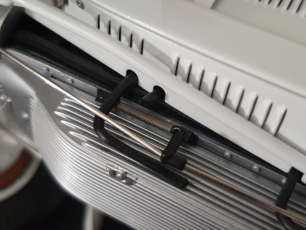 Откручиваются винты, позволяющие снимать и закреплять колеса. Съемные запасные колеса крепятся с помощью болта-фиксатора. Функциональная и аутентично воспроизведенная многослойная металлическая пружина на передней и задней осях. Заливная горловина со съемной крышкой из нержавеющей стали. Рулевое колесо обтянуто натуральной кожей. Оба рычага на рулевом колесе (ручной ускорения и опережения зажигания) подвижны. Верное оригинальному оформлению кабины, включая сиденья, обтянутые кожей, и прекрасно воспроизведенную приборную панель со всеми приборами и органами управления. Подвижное лобовое стекло для водителя и сменного водителя. Ребристые тормозные барабаны, созданные по образцу оригинала. Сложенная верхняя крыша, завернутая в кожаный чехол и закрепленная несколькими кожаными ремнями (не подвижна).