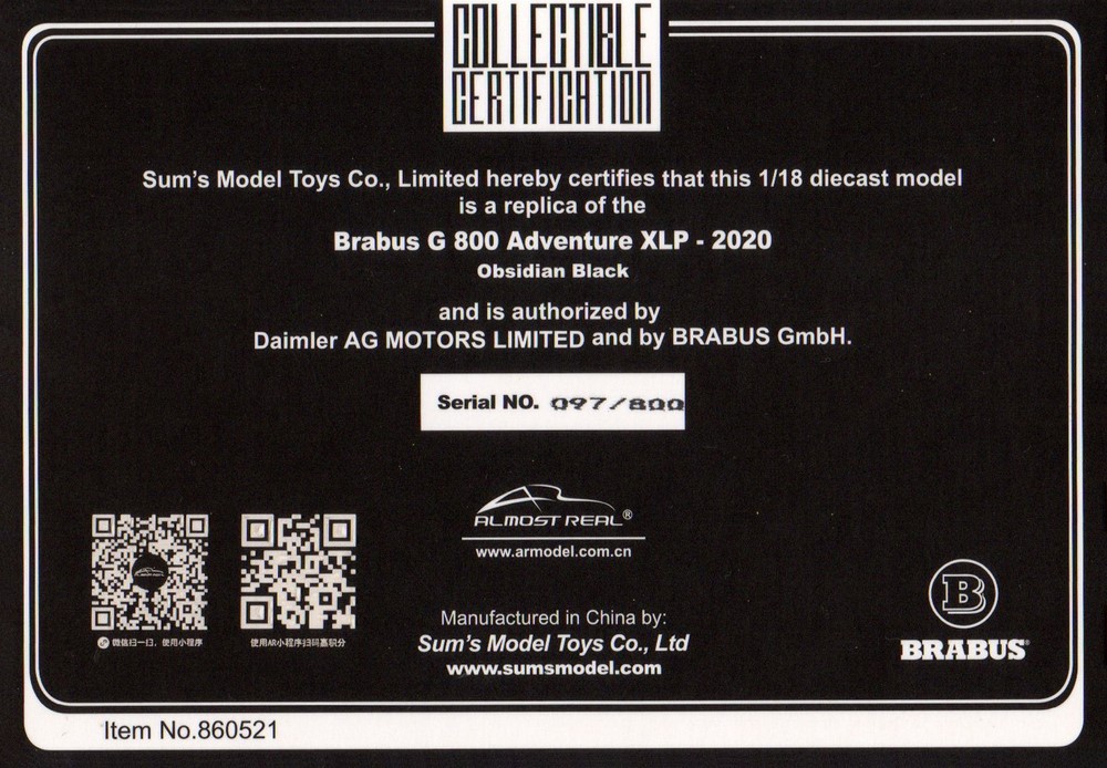 Модель: Mercedes Benz G800 Brabus XLP Adventure (black metallic) 2020