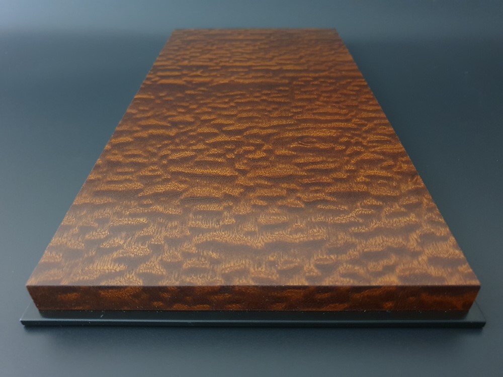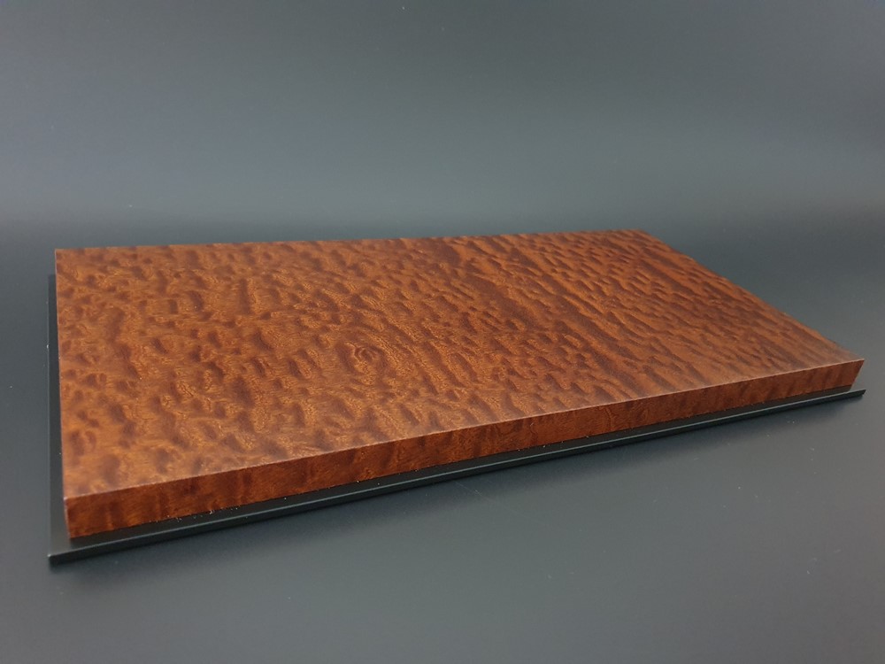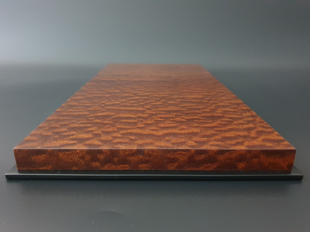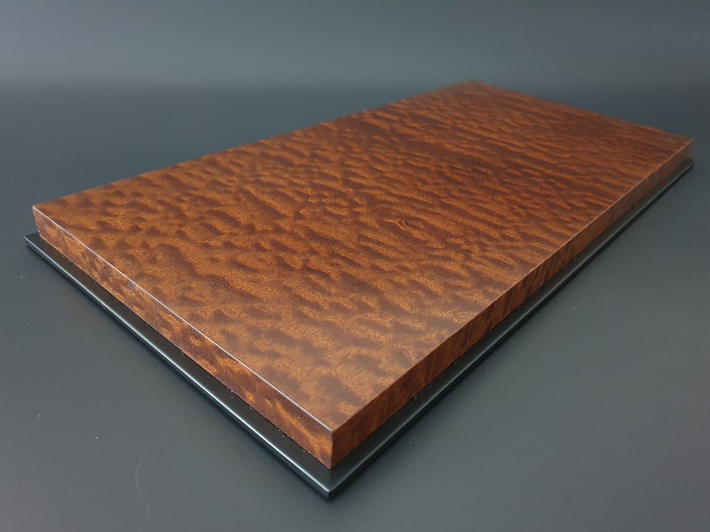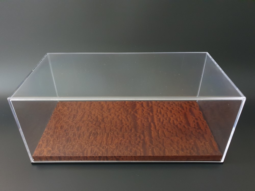 Модель: Ручная работа, индивидуально для масштабной модели автомобиля. Подиум облицован лучшим срезом натурального шпона Махагони (помеле). После тщательной шлифовки и полировки наборного шпона, изделие отделывается в 3 слоя полу матовым лаком производство Италии. Нижняя часть выполнена отдельной деталью с покрытием, имитирующим черное Эбеновое дерево. Она большего размера чем сам подиум и организовывает по всему периметру специальную четверть, что позволяет создать некий замок от проникновения пыли во внутрь пространства, где будет безопасно храниться ваша любимая масштабная модель автомобиля. Основа изделия: шлифованный влагостойкий МДФ. Нижняя часть подиума оклеена дизайнерским флокированным картоном, для безопасного скольжения на любой поверхности. Общий габарит данного изделия адаптирован под размер акрилового дисплея от компании BBR. Дополнительно, за отдельную стоимость, подиум может комплектоваться специальным защитным акрилом от этого бренда.