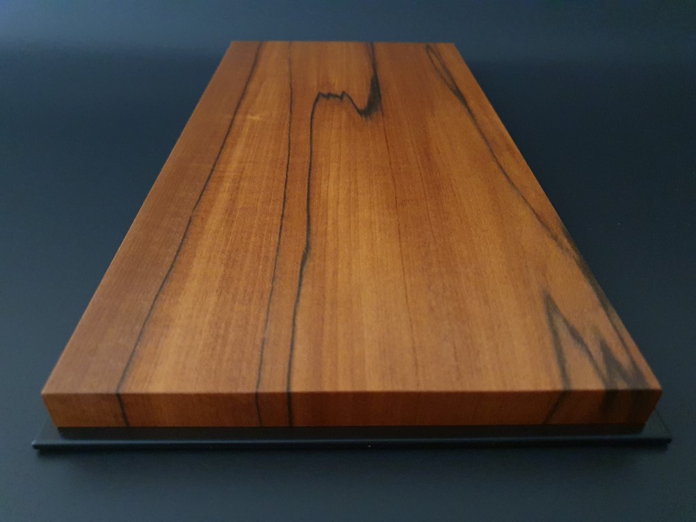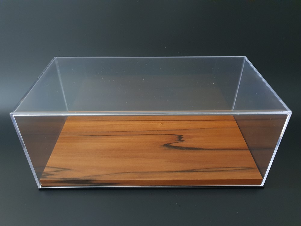 Модель: Ручная работа, индивидуально для масштабной модели автомобиля. Подиум облицован лучшим срезом натурального шпона Тинео (индийская яблоня). После тщательной шлифовки и полировки наборного шпона, изделие отделывается в 3 слоя полу матовым лаком производство Италии. Нижняя часть выполнена отдельной деталью с покрытием, имитирующим черное Эбеновое дерево. Она большего размера чем сам подиум и организовывает по всему периметру специальную четверть, что позволяет создать некий замок от проникновения пыли во внутрь пространства, где будет безопасно храниться ваша любимая масштабная модель автомобиля. Основа изделия: шлифованный влагостойкий МДФ. Нижняя часть подиума оклеена дизайнерским флокированным картоном, для безопасного скольжения на любой поверхности. Общий габарит данного изделия адаптирован под размер акрилового дисплея от компании BBR. Дополнительно, за отдельную стоимость, подиум может комплектоваться специальным защитным акрилом от этого бренда.