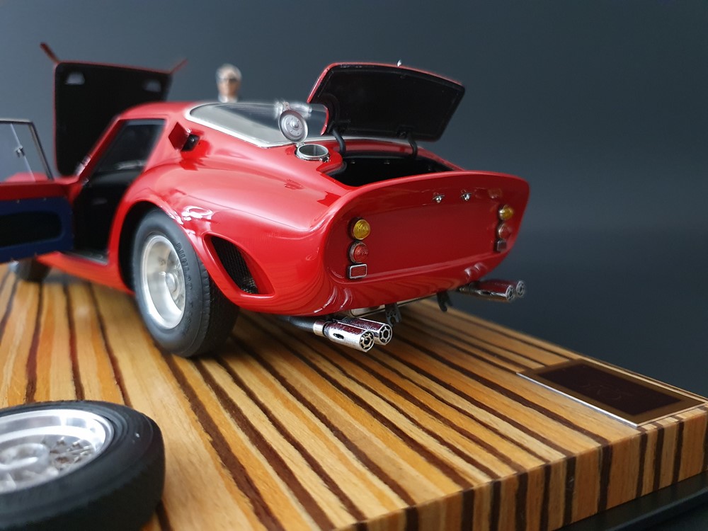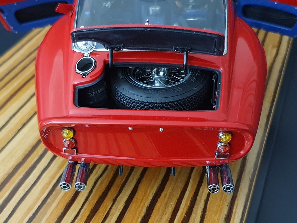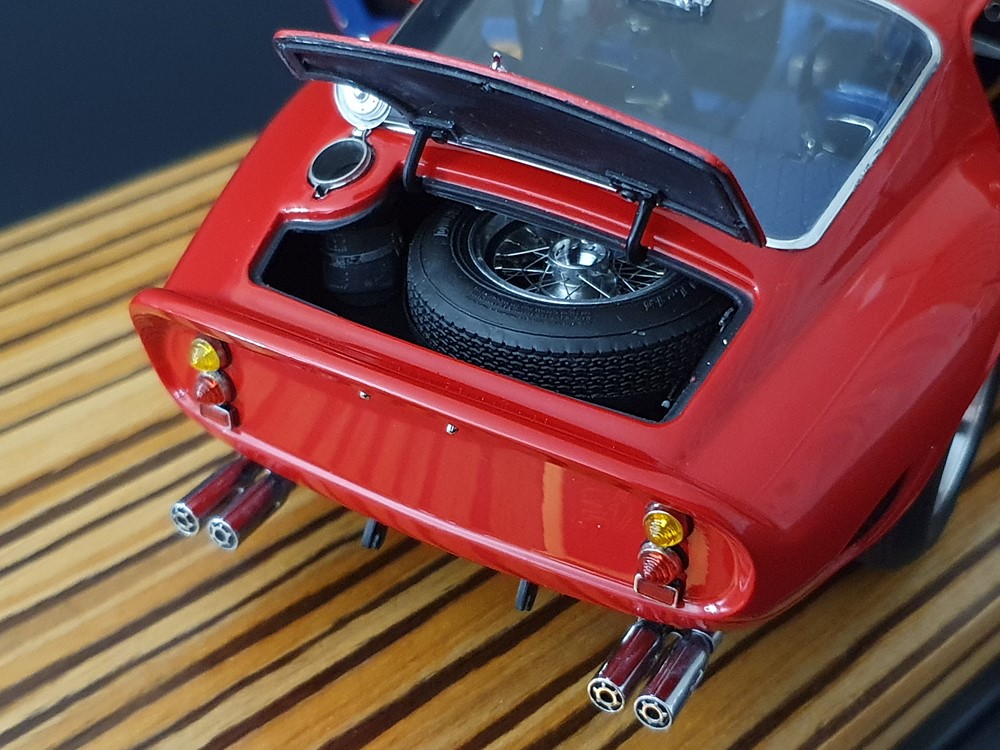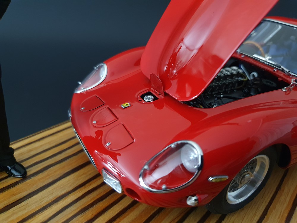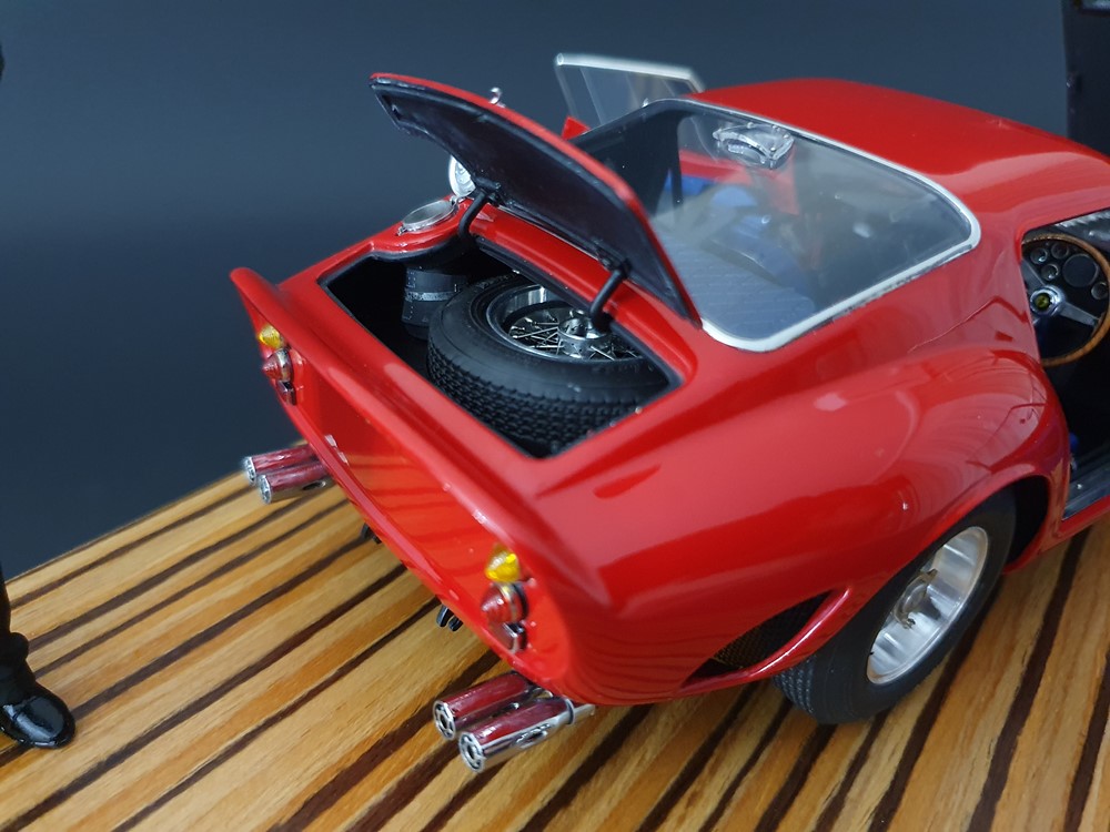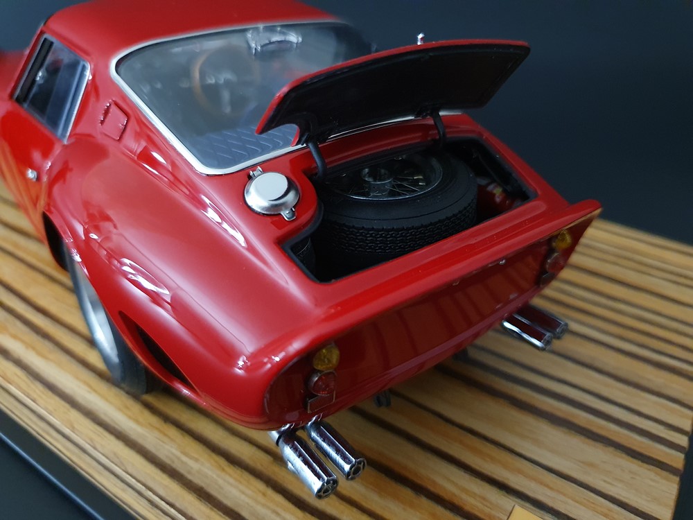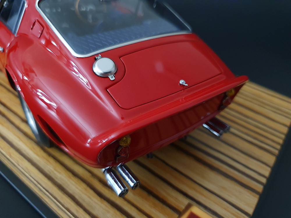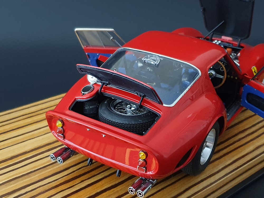 Технические данные оригинального автомобиля: Кузов двухместного купе (Berlinetta) из алюминия 12-цилиндровый V- образный двигатель с углом развала цилиндров 60° Смазка с сухим картером. Диаметр цилиндра x ход поршня 73 х 58,8мм. Объем двигателя 2953 куб. см. Мощность 300 л.с. при 7500 об/мин. Максимальная скорость 280 км/ч. Тормоза дисковые, спереди и сзади. Колесная база 2400мм. Длина кузова 4325мм. Ширина кузова 1600мм. Высота автомобиля 1210мм. Период создания 1962 – 1964 годы. Количество построенных кузовов 36 единиц.
