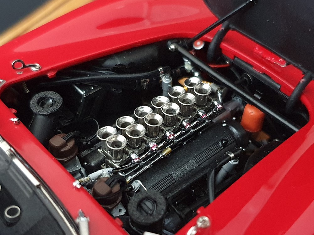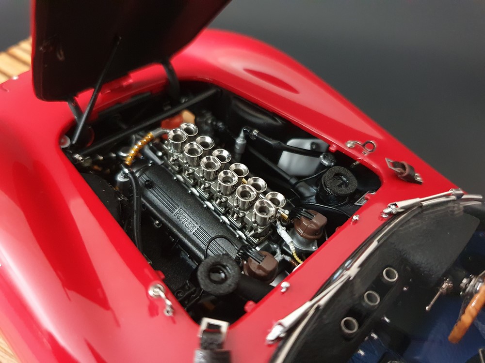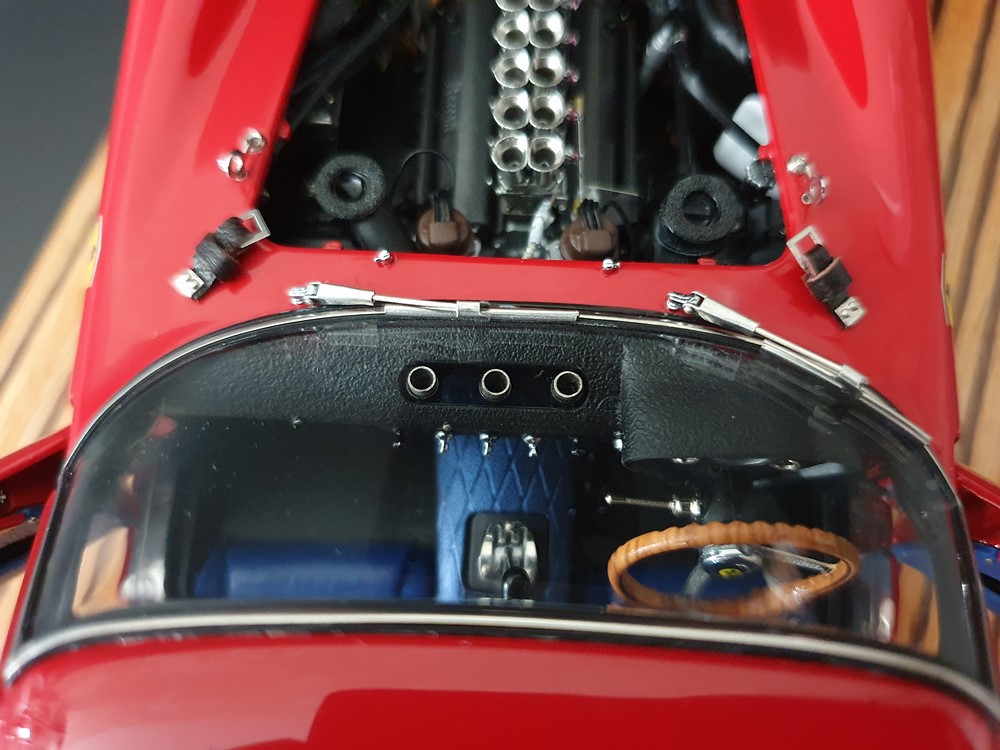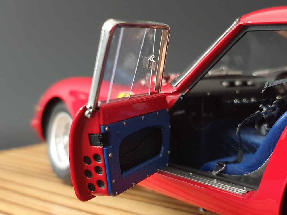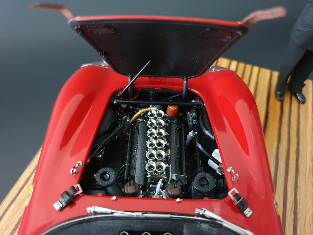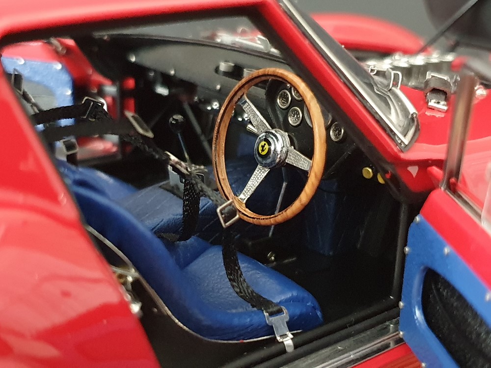 Подробное описание: Изготовленная вручную прецизионная модель из металла с правым рулем, состоящая из 1850 отдельных деталей в зависимости от варианта. Функциональный капот двигателя, оснащенный опорной штангой, быстросъемными замками и кожаным ремнем безопасности. Функциональные двери с раздвижными окнами. Крышка багажника имеет опорный стержень и открывается, открывая доступ к съемному запасному колесу. Задний заливной бак с действующей откидной крышкой. Идеально подогнанные диски с легко сплавными дисками и съемными центральными гайками Borrani (с зависимой от стороны правой и левой резьбой).Высоко детализированный 12-цилиндровый V- образный двигатель со всеми агрегатами, трубами и кабелями. Тщательная копия интерьера с каркасом безопасности и ремнями безопасности. Сиденья обиты текстилем с кожаной отделкой.
