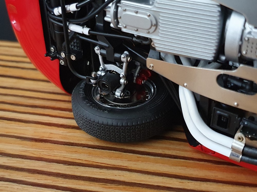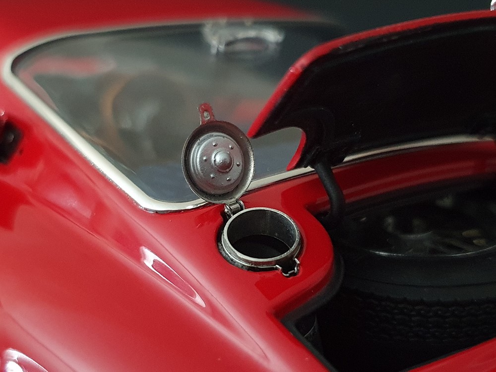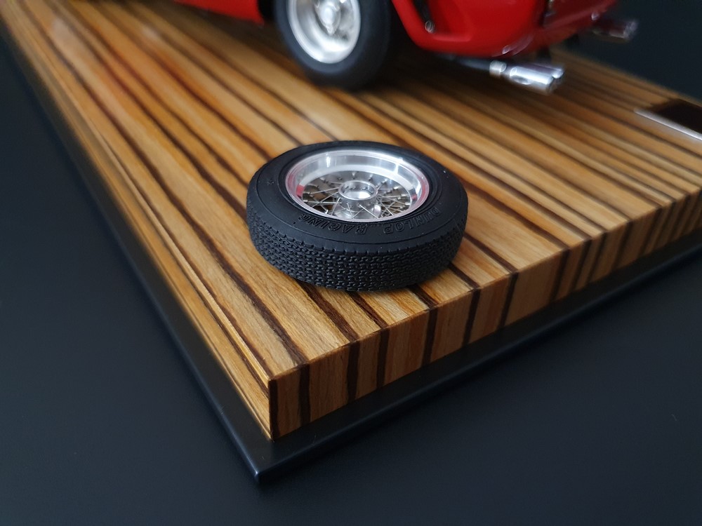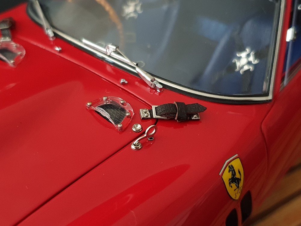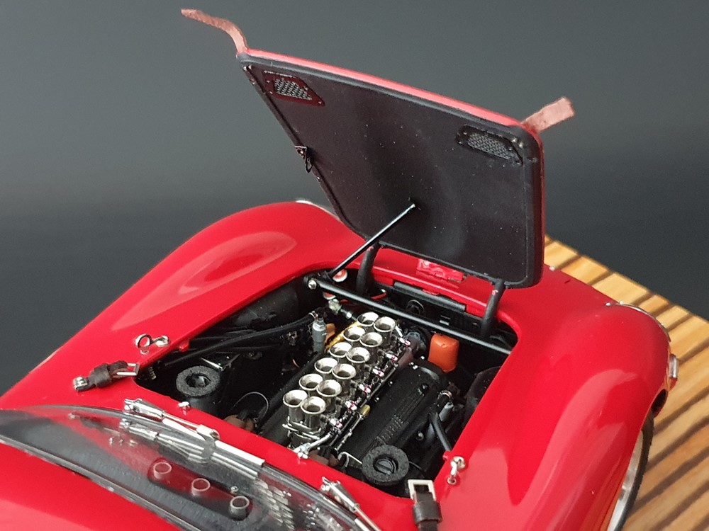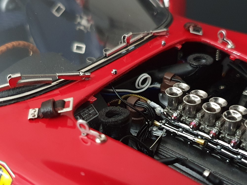 Подробное описание: Изготовленная вручную прецизионная модель из металла с правым рулем, состоящая из 1850 отдельных деталей в зависимости от варианта. Функциональный капот двигателя, оснащенный опорной штангой, быстросъемными замками и кожаным ремнем безопасности. Функциональные двери с раздвижными окнами. Крышка багажника имеет опорный стержень и открывается, открывая доступ к съемному запасному колесу. Задний заливной бак с действующей откидной крышкой. Идеально подогнанные диски с легко сплавными дисками и съемными центральными гайками Borrani (с зависимой от стороны правой и левой резьбой).Высоко детализированный 12-цилиндровый V- образный двигатель со всеми агрегатами, трубами и кабелями. Тщательная копия интерьера с каркасом безопасности и ремнями безопасности. Сиденья обиты текстилем с кожаной отделкой.
