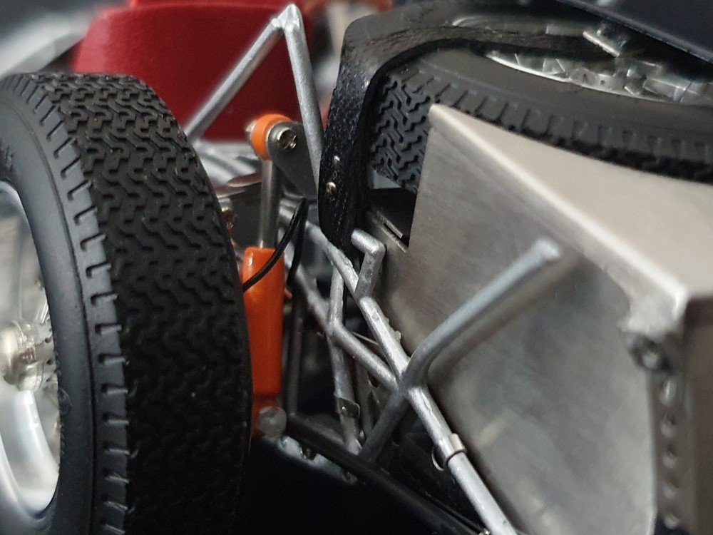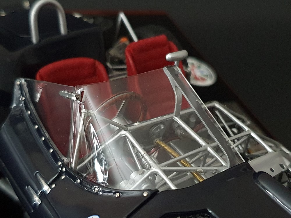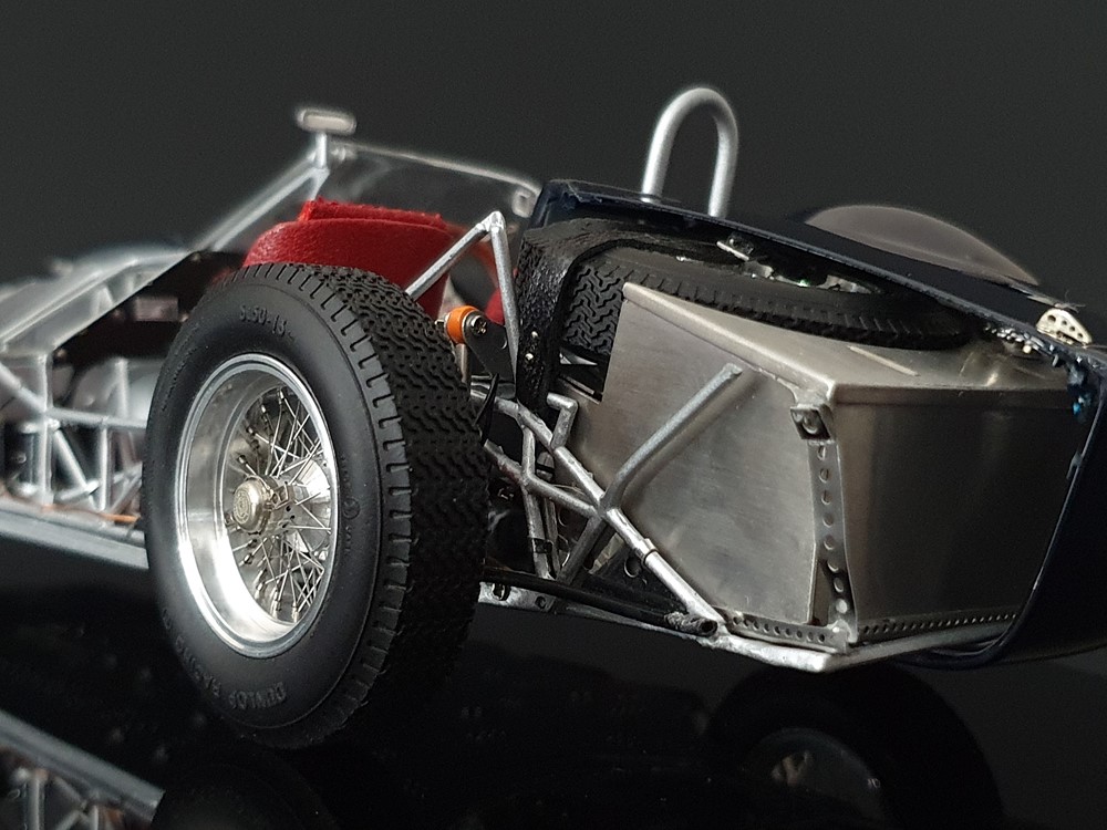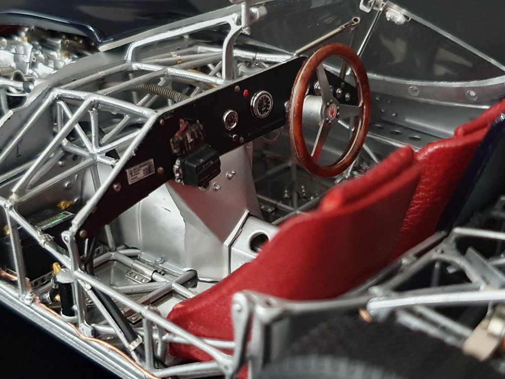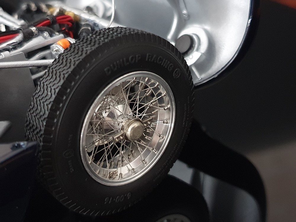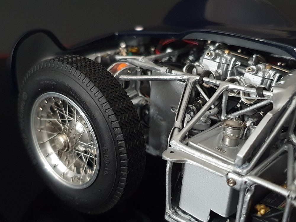 Подробное описание: Собранная вручную модель, состоящая из 1523 деталей. Верная оригиналу филигранная металлическая пространственная рама. Корпус в точном масштабе и с точными деталями. Изысканная двухцветная окраска как дань швейцарскому происхождению Gus Andrey’s. Передний откидной капот двигателя с функциональным запирающим механизмом. Высоко детализированный двигатель со всеми агрегатами, трубопроводами и кабелями. Масляный бак с подвижной крышкой. Воздухозаборник для охлаждения пола помещения, сделанный из металла. Панель приборов с подробными приборами. Гоночные сиденья с кожаной обивкой. Раздвижные двери на филигранных петлях. Съемная задняя крышка с функциональным запирающим механизмом. Металлический топливный бак с заливной горловиной и подвижной крышкой. Съемное запасное колесо, крепится кожаным ремнем. Съемные спицованные колеса на алюминиевых дисках. Спицы из нержавеющей стали, скрученные вручную. Опорную пластину можно открутить, чтобы еще лучше рассмотреть пространственную раму. Клепаные ребра жесткости, используемые для металлической плиты пола кабины. Подвеска переднего колеса — односкатная, с двумя треугольными поперечными рычагами, включая винтовые пружины и телескопические амортизаторы. Задняя ось De-Dion с поперечно установленной металлической пружиной и телескопическими амортизаторами.