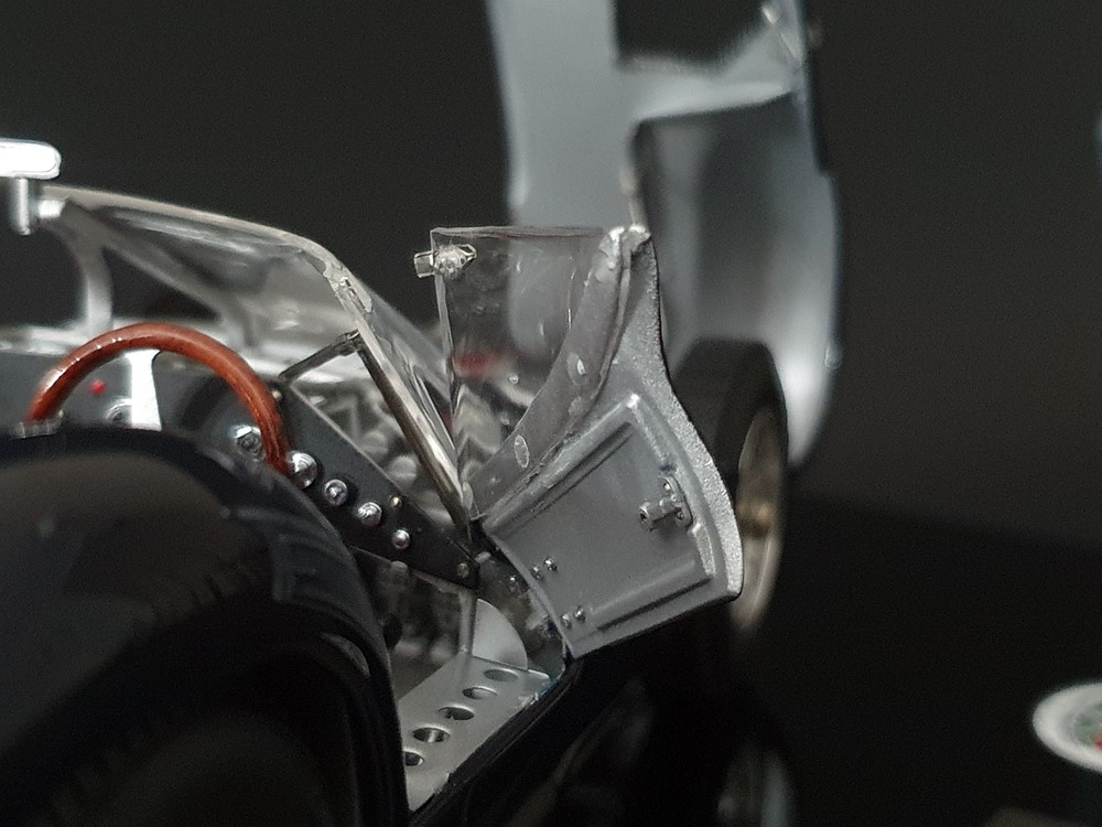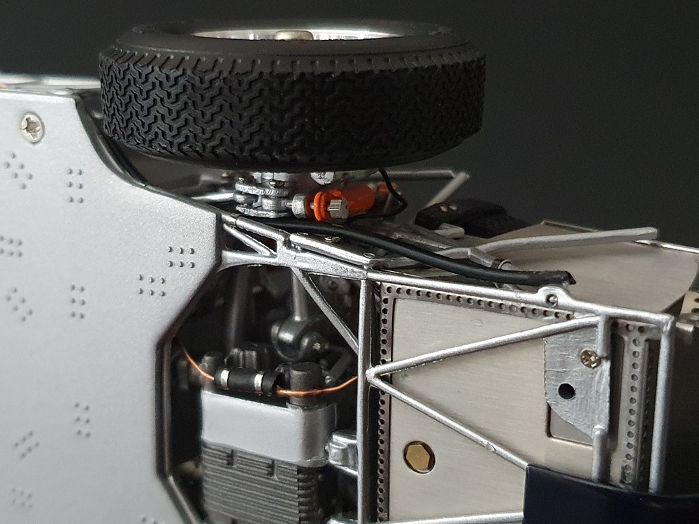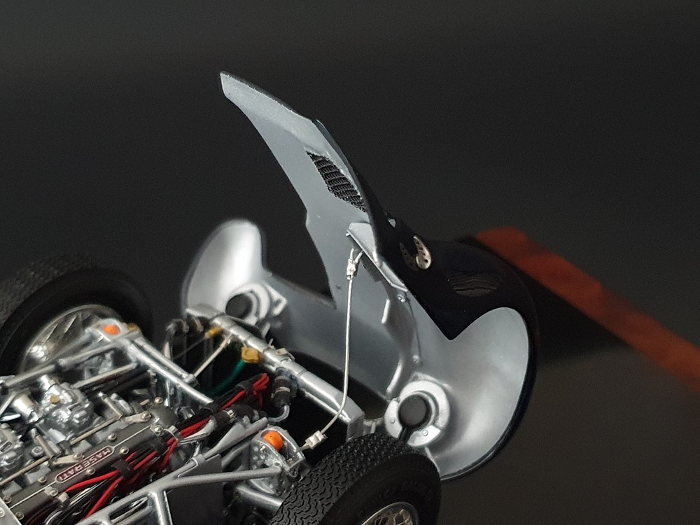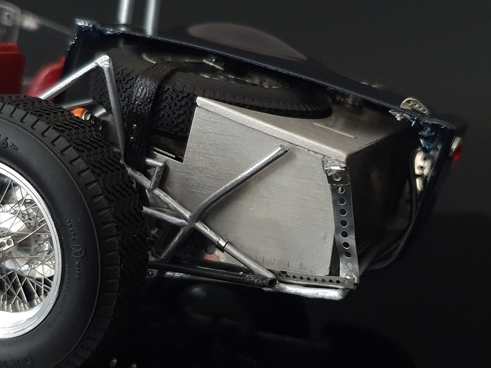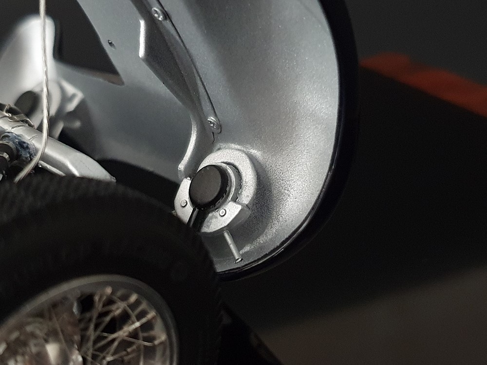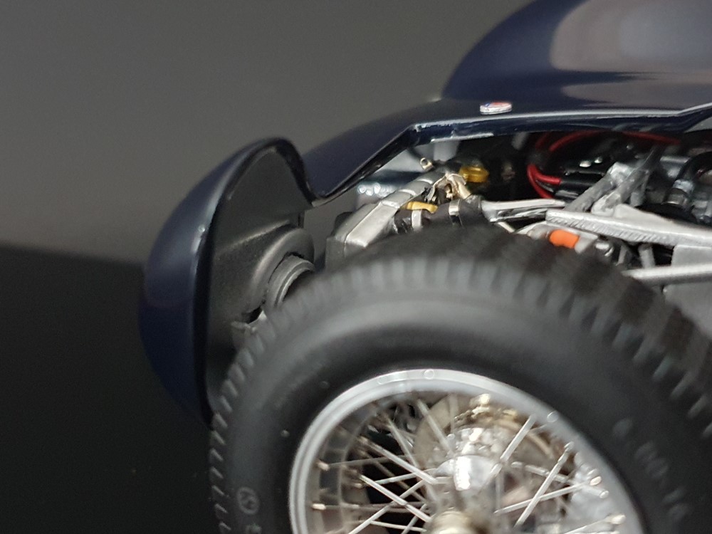 Подробное описание: Собранная вручную модель, состоящая из 1523 деталей. Верная оригиналу филигранная металлическая пространственная рама. Корпус в точном масштабе и с точными деталями. Изысканная двухцветная окраска как дань швейцарскому происхождению Gus Andrey’s. Передний откидной капот двигателя с функциональным запирающим механизмом. Высоко детализированный двигатель со всеми агрегатами, трубопроводами и кабелями. Масляный бак с подвижной крышкой. Воздухозаборник для охлаждения пола помещения, сделанный из металла. Панель приборов с подробными приборами. Гоночные сиденья с кожаной обивкой. Раздвижные двери на филигранных петлях. Съемная задняя крышка с функциональным запирающим механизмом. Металлический топливный бак с заливной горловиной и подвижной крышкой. Съемное запасное колесо, крепится кожаным ремнем. Съемные спицованные колеса на алюминиевых дисках. Спицы из нержавеющей стали, скрученные вручную. Опорную пластину можно открутить, чтобы еще лучше рассмотреть пространственную раму. Клепаные ребра жесткости, используемые для металлической плиты пола кабины. Подвеска переднего колеса — односкатная, с двумя треугольными поперечными рычагами, включая винтовые пружины и телескопические амортизаторы. Задняя ось De-Dion с поперечно установленной металлической пружиной и телескопическими амортизаторами.