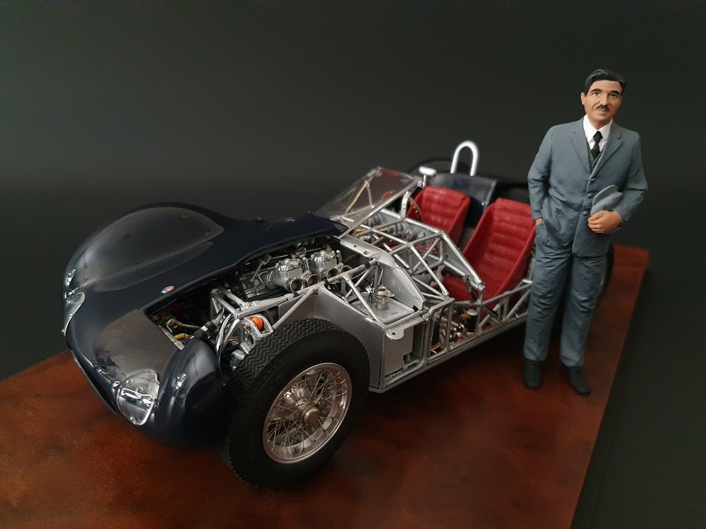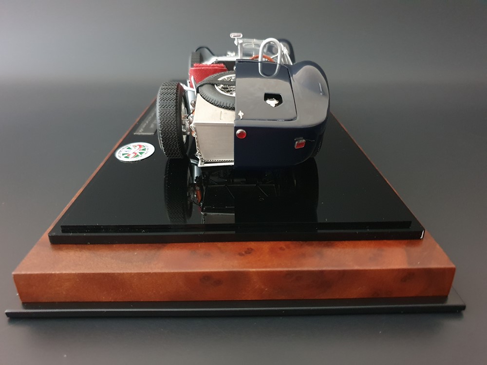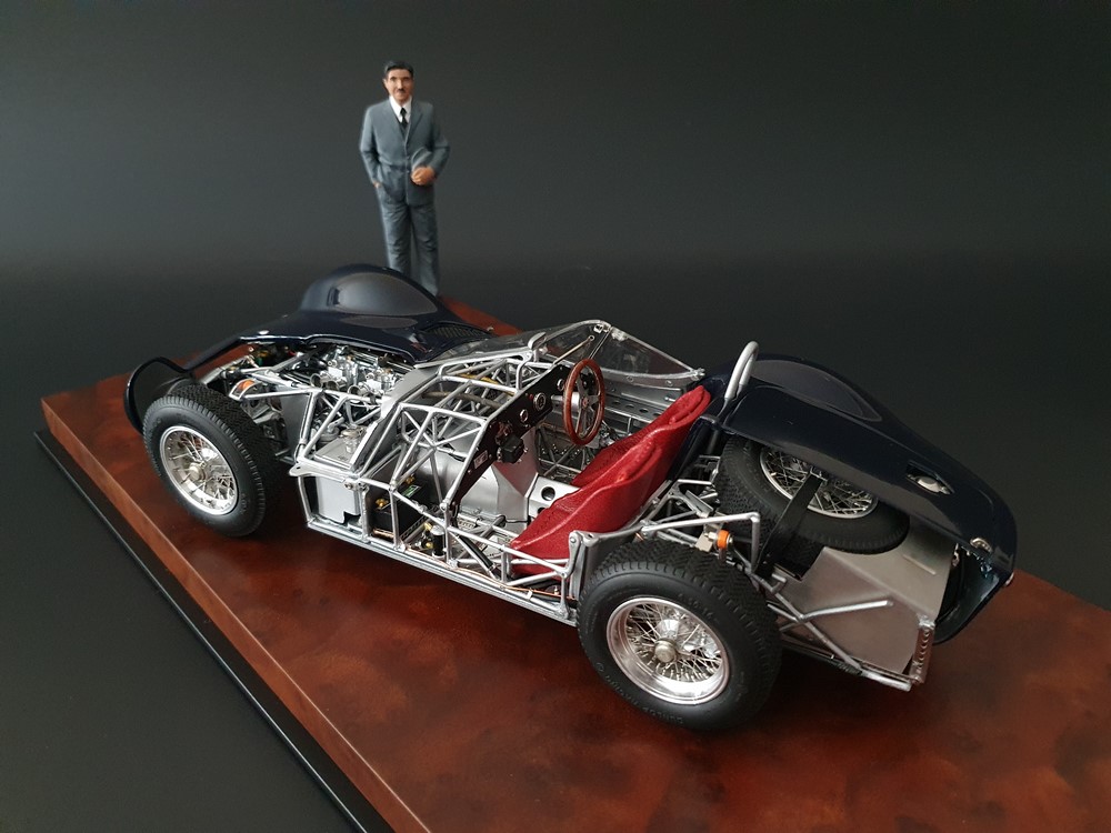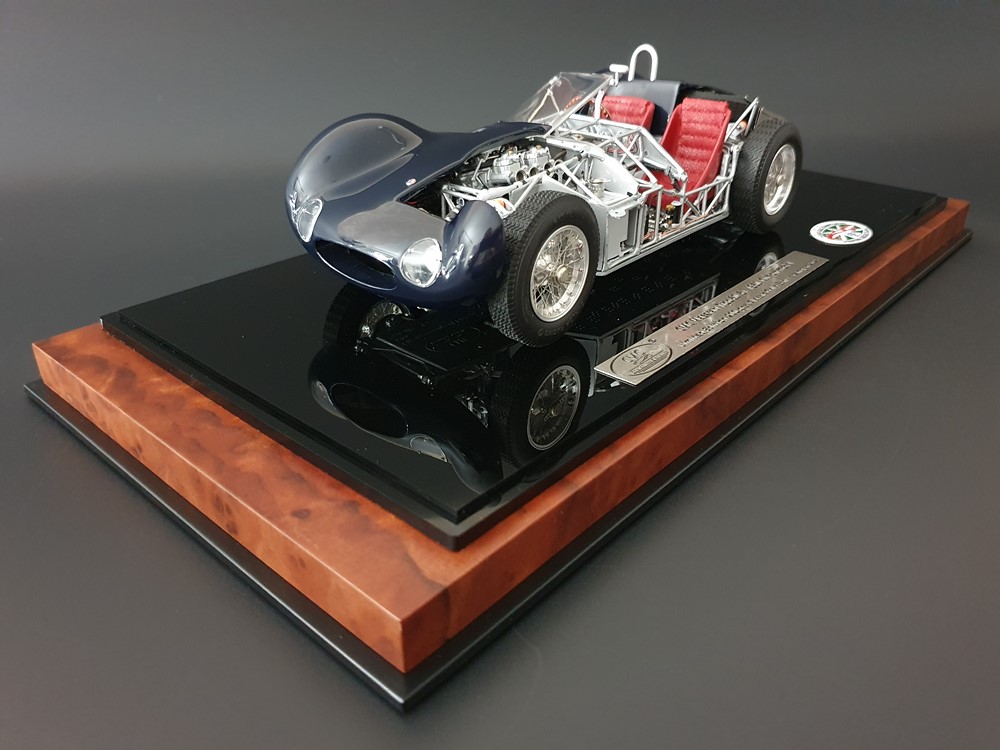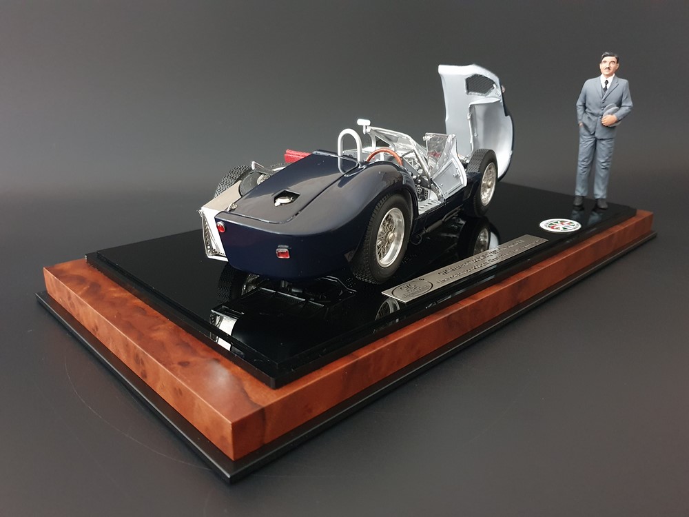 Технические данные оригинального автомобиля: Четырехцилиндровый рядный двигатель с наклоном 45° вправо. Одинарная подвеска передних колес. Задняя ось De-Dion с поперечно установленной составной рессорой. Мощность двигателя 250л/с. при 6800 об/мин. Максимальная скорость 285 км/час. Длина колесной базы 2200мм. Общая длина кузова 3800мм. Общий вес 600 кг.
