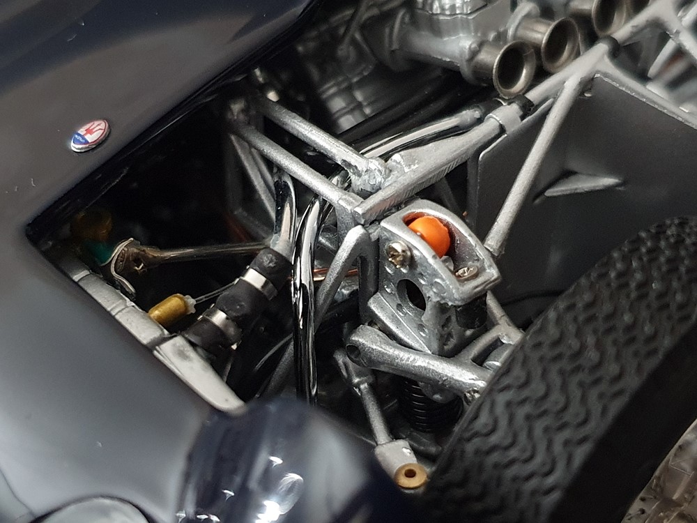 История: Maserati Tipo 60/61, разработанный Giulio Alfieri, выпускался исключительно для клиентов с 1959 по 1961 год. Выпускался исключительно для клиентов; заводского производства не было из-за сложного экономического положения компании в то время. Общий объем производства составил 22 автомобиля, что было весьма скромным. Автомобиль стал известен как Maserati «Птичья клетка» («Vogelkäfig»), намек на необычную трубчатую решетчатую раму весом всего 30 кг, состоящую из более чем 200 тонкостенных стальных труб с небольшим диаметром, но в то же время прочностью, аналогичной гораздо более дорогому монококу. Снаряженная масса составляет 600 кг. Капот «Birdcage» очень аккуратный, поскольку рядный четырехцилиндровый двигатель первоначально объемом 2,0 л, а позднее 2,9 л и мощностью 250 л.с. при 6500 об/мин установлен под углом 45 градусов, что обеспечивает благоприятный воздушный поток. Благодаря широкому спектру аэродинамических оптимизаций (включая очень низкое ветровое стекло, плотно прилегающие передние колеса, заднюю кромку сзади) автомобиль развивает максимальную скорость от 285 до 300 км/ч, в зависимости от передаточного числа 5-ступенчатой коробки передач. При этом эти меры обеспечивают низкий расход топлива, что особенно важно в гонках на длинные дистанции. Колеса со спицами и шинами размерностью 6,50×16 спереди подвешены на двойных треугольных поперечных рычагах с винтовыми пружинами и телескопическими амортизаторами. Задняя подвеска - ось De Dion с поперечными листовыми рессорами и телескопическими амортизаторами. Автомобиль оснащен дисковыми тормозами Girling на всех четырех колесах