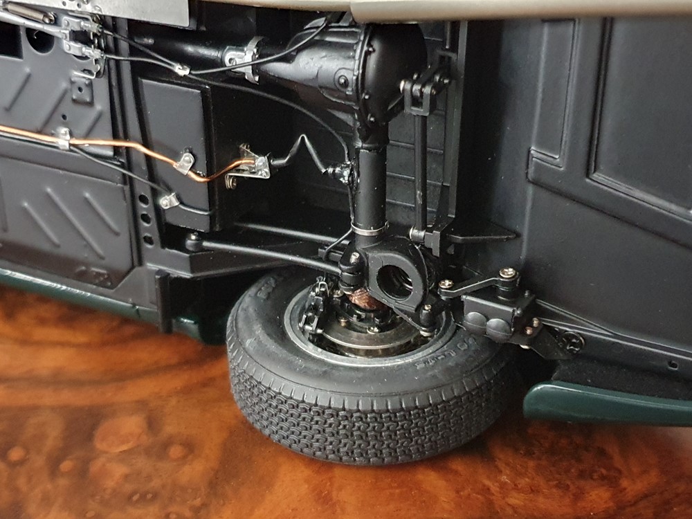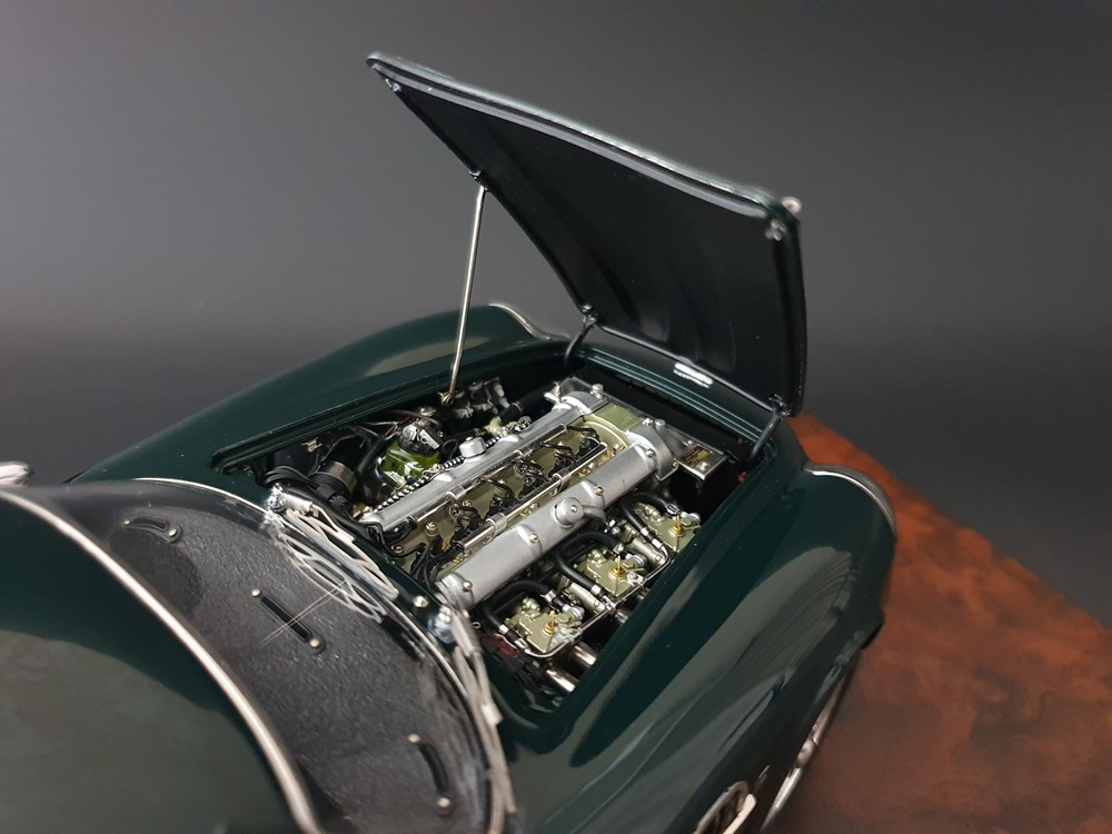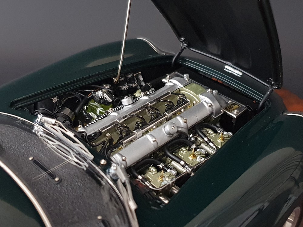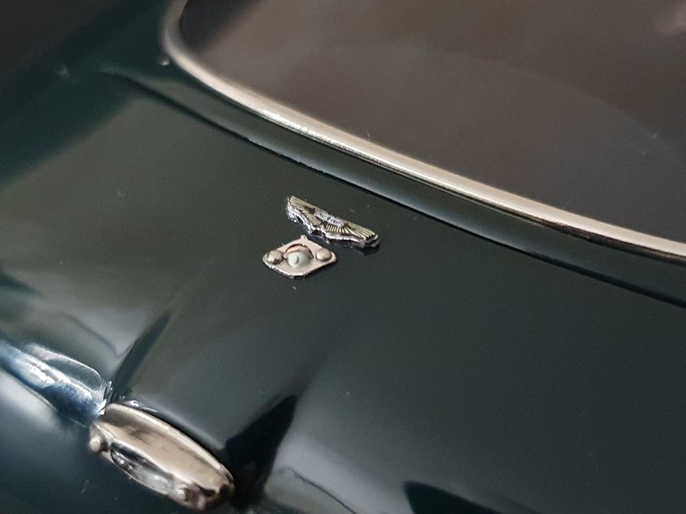 Функционал: Есть, полный (капот с упором, багажник на специальных замочках, двери с кожаными картами в салоне, запаска на кожаном ремне с пряжкой, рабочая горловина бензобака. Модель собрана из 1825 деталей.