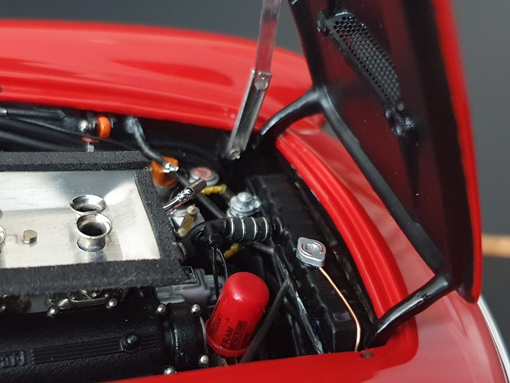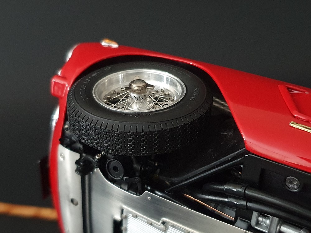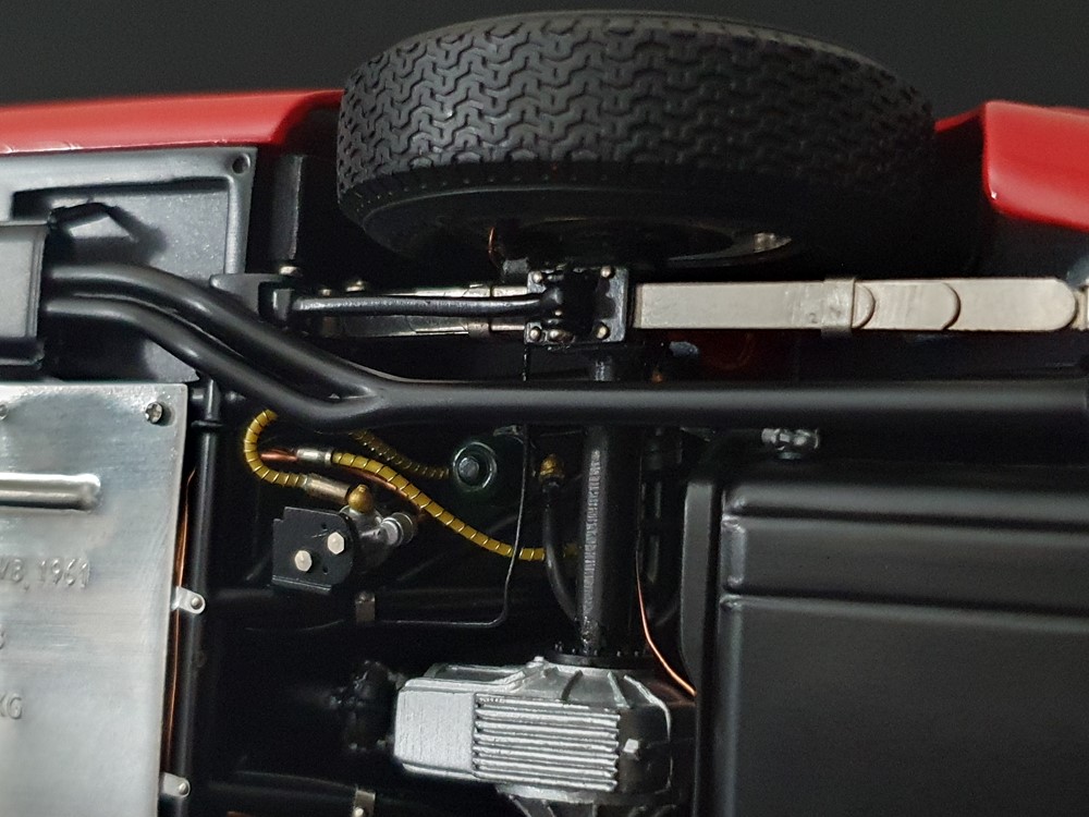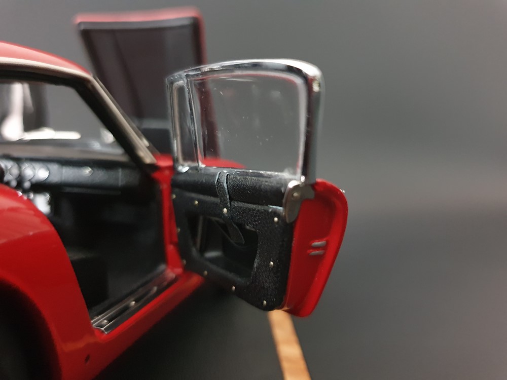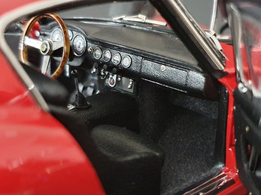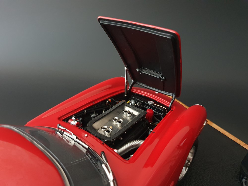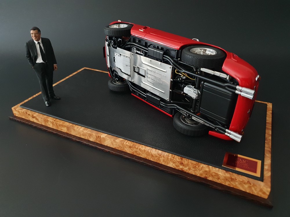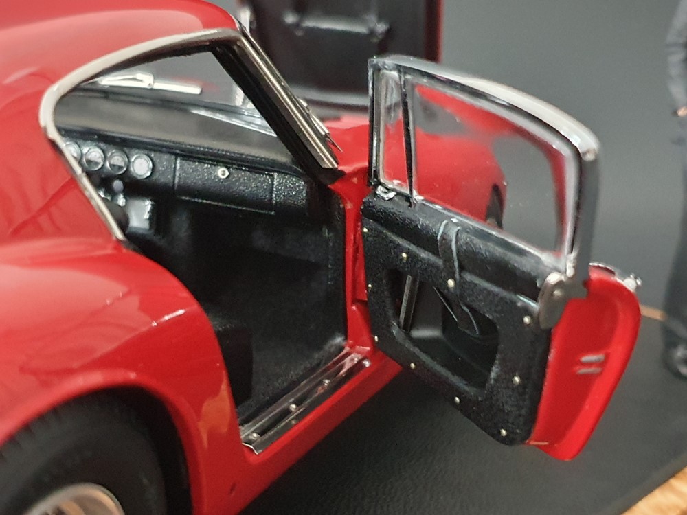 Подробное описание: Высокоточная модель, изготовленная вручную из более чем 1100 отдельных деталей. Аутентичный корпус, повторяющий форму чешуи, с блестящей отделкой. Откидные капот двигателя и багажника. Высоко детализированная модель шестицилиндрового оппозитного двигателя с полной проводкой и кабелями. Модель "Competizione" имеет множество отличительных особенностей по сравнению с дорожной версией. Бамперы были сняты. Дополнительные передние воздухозаборники для охлаждения дискового тормоза. Большие 16-дюймовые колеса размерами 6,00 x 16 (переднее) и 6,50 x 16 (заднее). Различные выхлопные трубы с хромированными коллекторами SNAP. Шасси, включая защитную пластину. Быстросъемные домкраты спереди. Подвижное устройство для быстрого открывания/закрывания гоночного топливного бака (без крышки топливного бака). Переоборудованный багажник с увеличенным топливным баком (130 литров) и съемным запасным колесом. Визуально измененная приборная панель с черной, сморщенной поверхностью. Боковая декоративная панель двери не имеет покрытия (без механизма стеклоподъемника). Карбюраторная система с открытыми впускными патрубками и воздушным экраном.