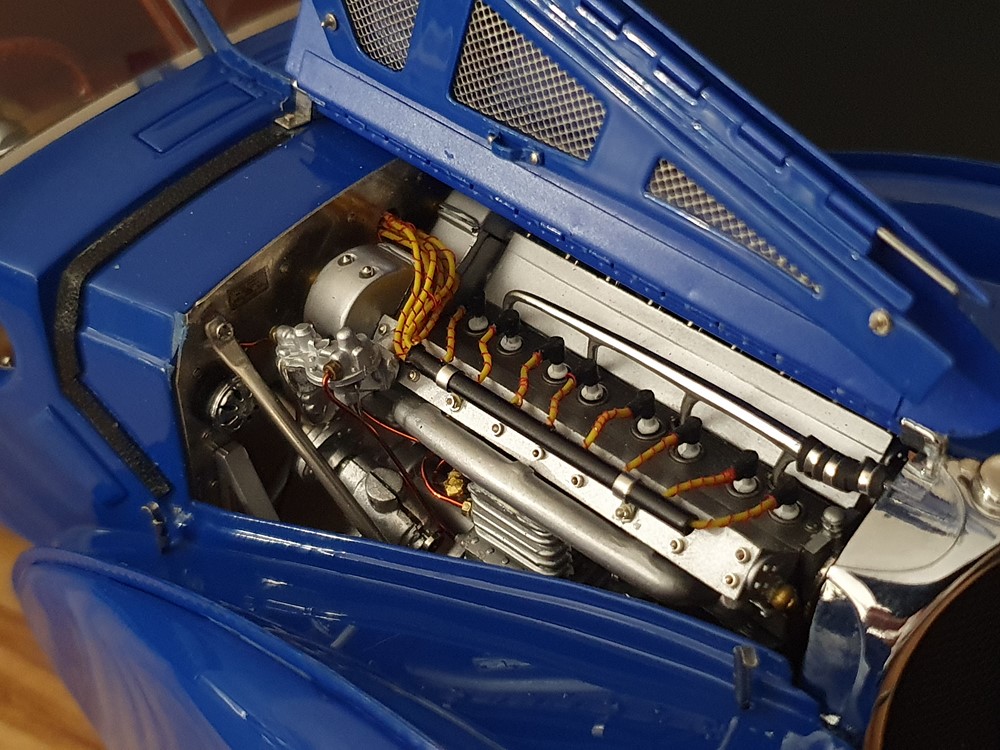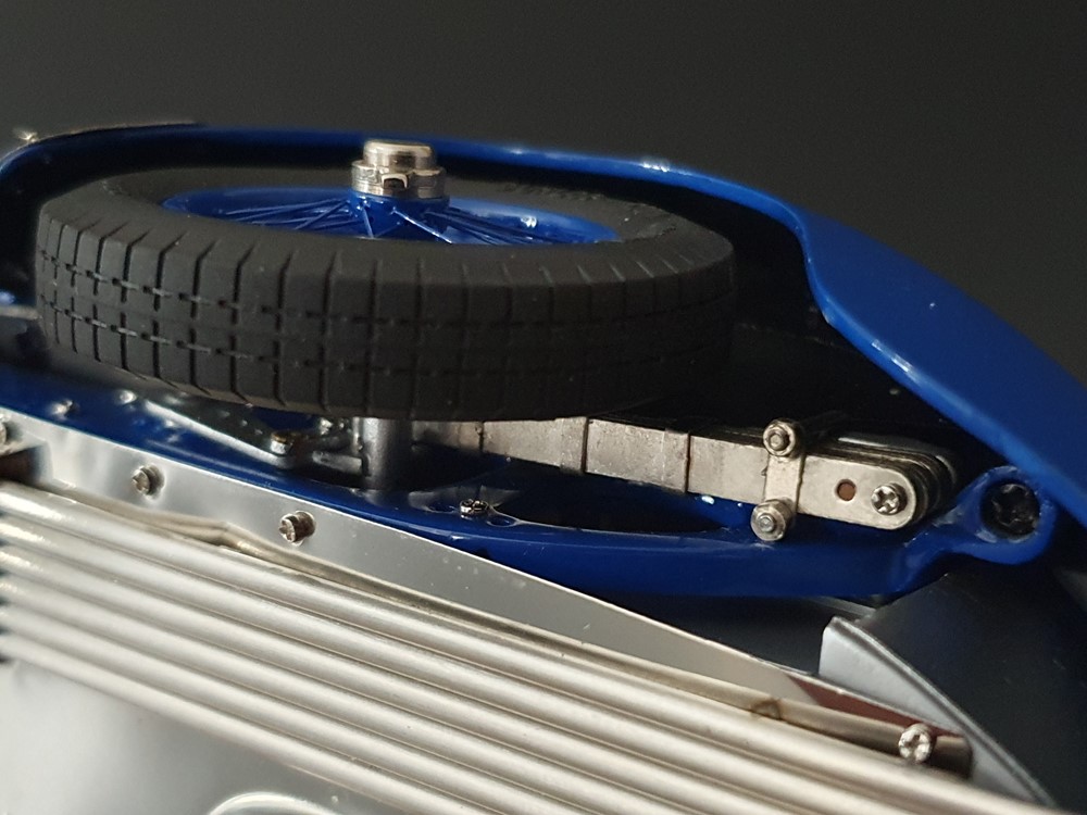 Подробное описание: Прецизионная металлическая модель CMC, собранная вручную из более чем 1700 деталей. Аутентичная и масштабная копия двухместного кузова купе с дверями, убирающимися в крышу. Элегантный дизайн двери с тремя петлями. Нижняя направляющая двери с полностью функциональным раздвижным механизмом. Точно масштабированная и воспроизведенная металлическая рама. Капот двигателя двустворчатый. Функциональные откидные боковины на петлях. Боковые воздухозаборники закрыты мелкоячеистыми металлическими решетками. Открытые крылья капота опираются на специальные металлические штифты с буртиком. Точная копия оригинального заднего шва на крыше и крыльях с характерной заклепочной структурой. Идеально воссозданная решетка радиатора, выполненная из металла с зеркальным блеском. Эмблема Bugatti прикреплена отдельной деталью. Точная копия переднего, боковых и заднего окон. Все окна обрамлены нержавеющей сталью. Наборные дворники с резинками на переднем стекле. Высоко детализированный 8-цилиндровый рядный двигатель с двумя верхними распредвалами, в сборе со всеми агрегатами, трубами и кабелями проводки. Идеально скопированные колеса с алюминиевыми дисками и спицами из нержавеющей стали. Установленные вручную ниппели. Колеса крепятся быстро съемной центральной гайкой. Защелки охладителя и бака можно открыть вручную. Реалистично воспроизведенная кабина, кожаные сиденья и внутренняя отделка дверей. Внутренняя отделка дверей прошита и оснащена функциональными карманами. Аутентичная копия приборной панели со всеми приборами и органами управления. Сложная ходовая часть, включающая выхлопные трубы из нержавеющей стали и точно соответствующую оригиналу металлическую пластину днища с воздухозаборниками.