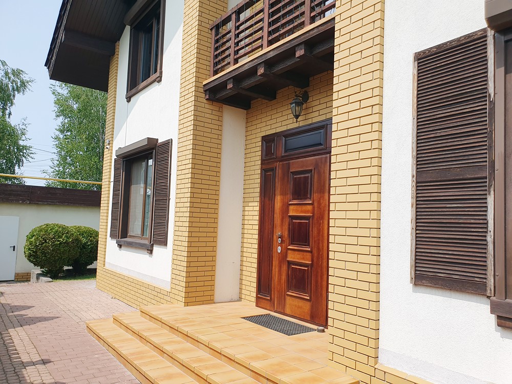 235м.кв. 2-х этажный, стены Польский газобетон, крыша натуральная керамика Германия, металлопластиковые окна пр-во Дания, отопление электро и газовое, вода городская. Планировка: гостиная с камином и выходом на террасу, 2 спальни, 3 санузла, кабинет. Интерьер выполнен в классике из дорогих материалов, много натурального дерева, встроенная мебель с бытовой техникой и многое другое. Дом строился для себя!