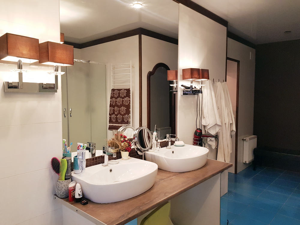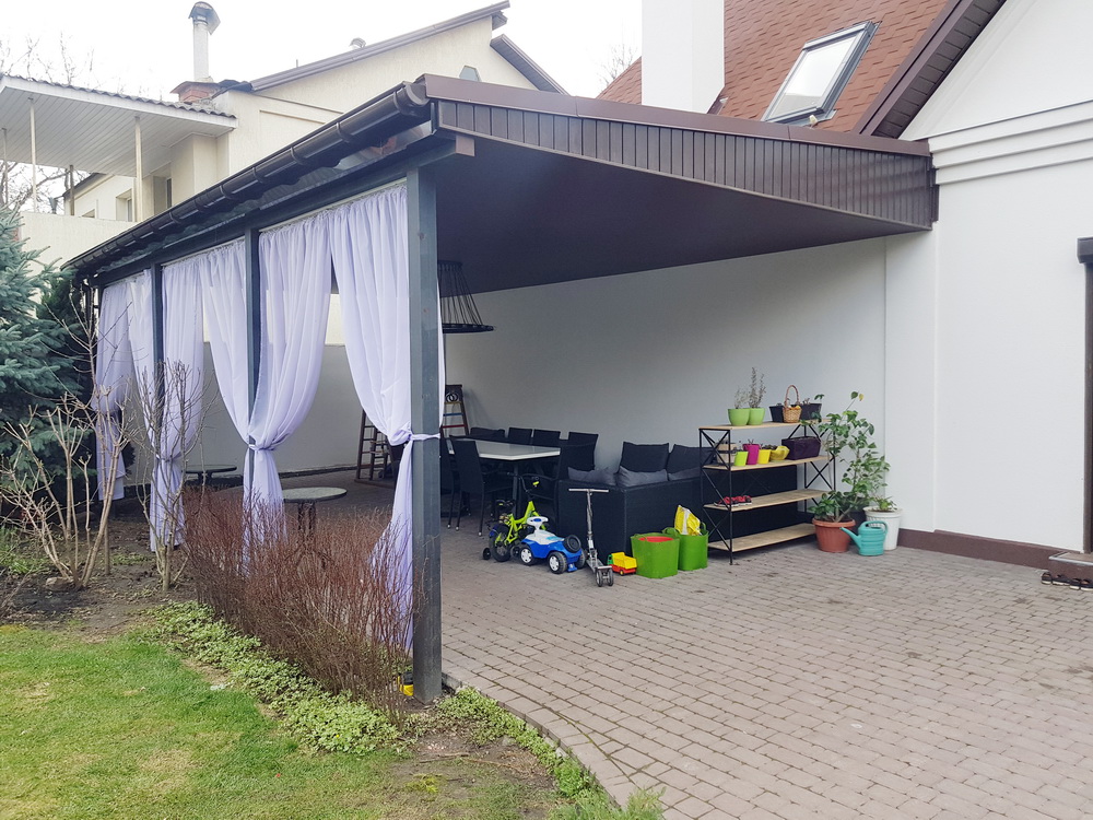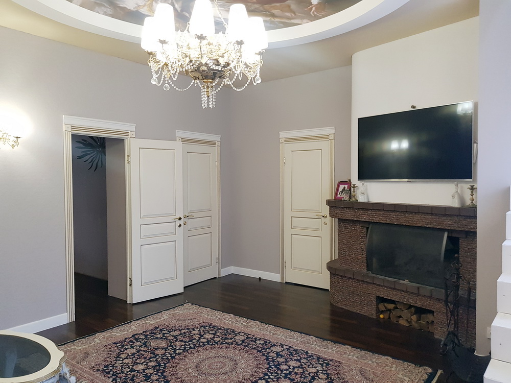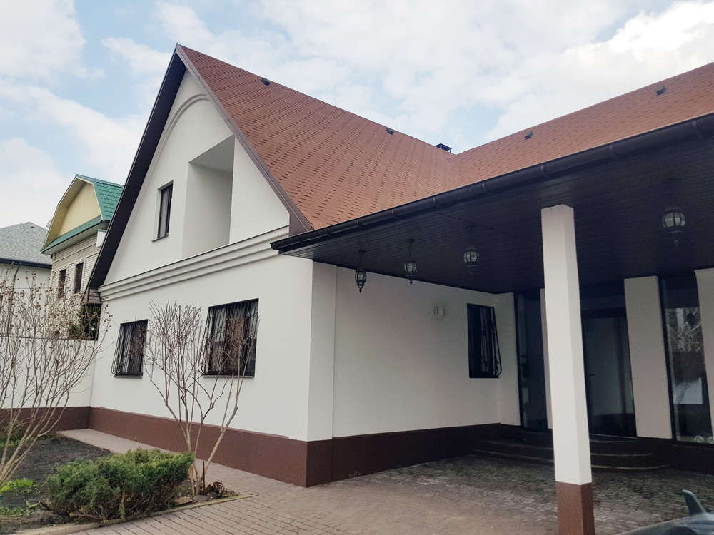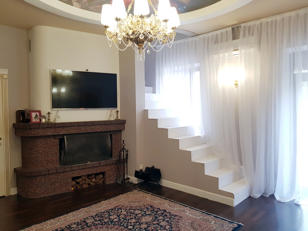 337м.кв. 2-х этажный, первый этаж все с ремонтом и обстановкой + огромная терраса 45м.кв. с садовой мебелью, второй после строителей. Энергоэффективный дом – затраты на отопление 1000гр. в месяц. С горячей водой (бойлер косвенного нагрева). Планировка: 1-й этаж: гостиная, кухня, 2 спальни, два санузла, топочная. 2-й этаж после строителей: 3 спальни, кабинет, холл и санузел.