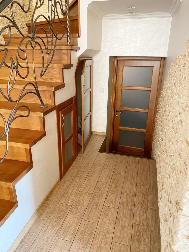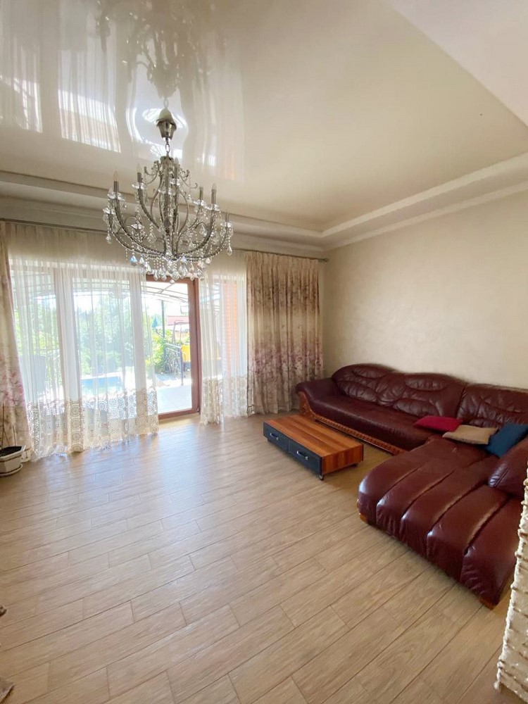 263м.кв. 2-х этажный + гараж + крытая терраса, 2012г. постройки, стены ракушняк + красный кирпич, металлопластиковые окна + ролеты, крыша металлочерепица, отопление: газовый и твердотопливный котел, межкомнатные двери и лестница из натурального дерева, кондиционеры, спутниковое телевидение, действующий камин в гостиной, встроенная кухня с бытовой техникой, мягкая мебель и так далее… Планировка: кухня, гостиная с выходом на террасу, 3 спальни, санузел, хоз/часть