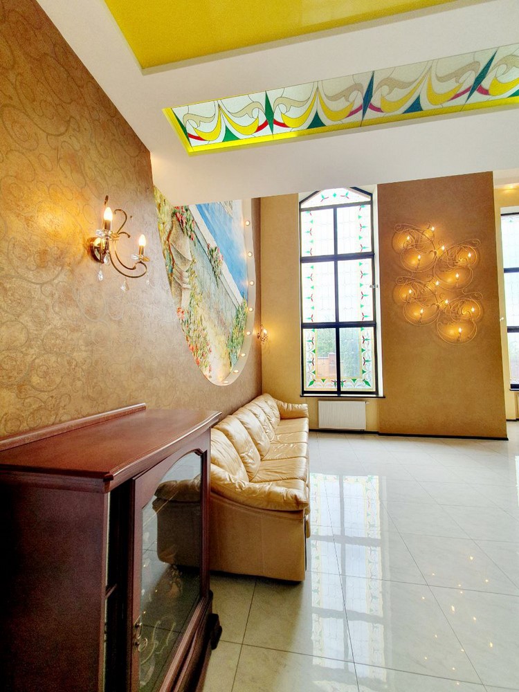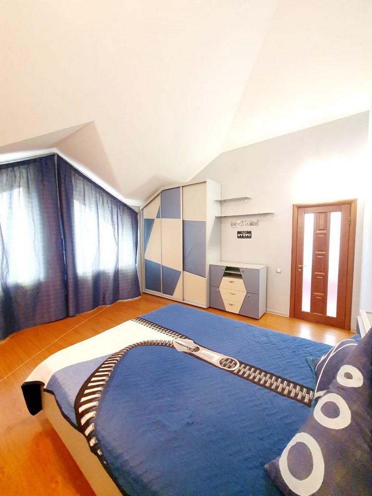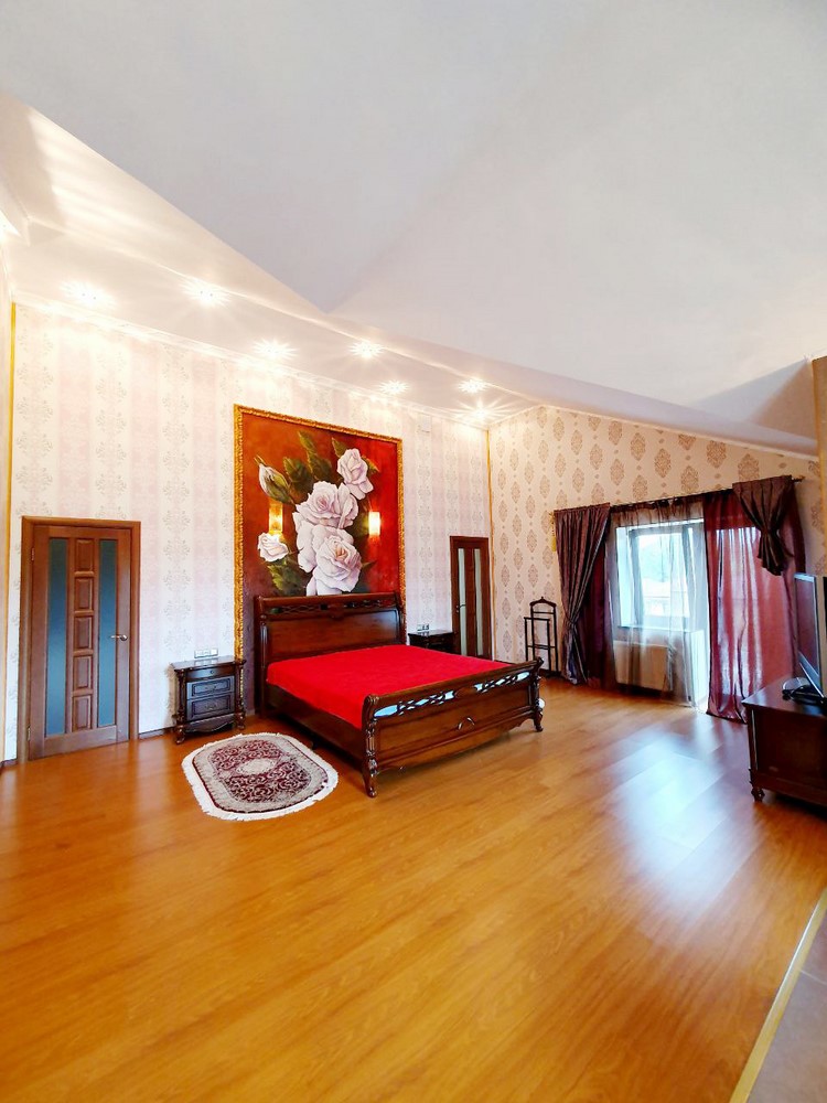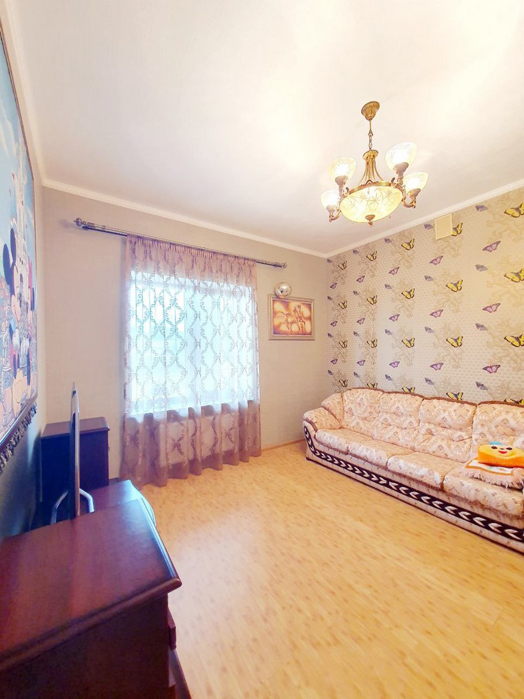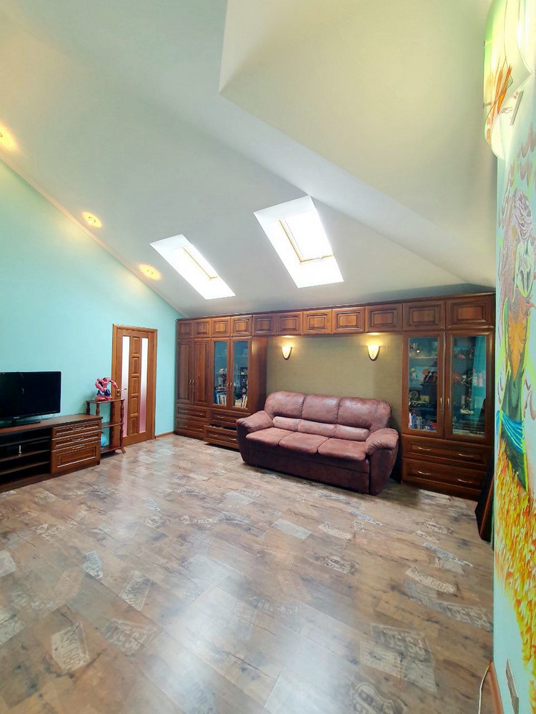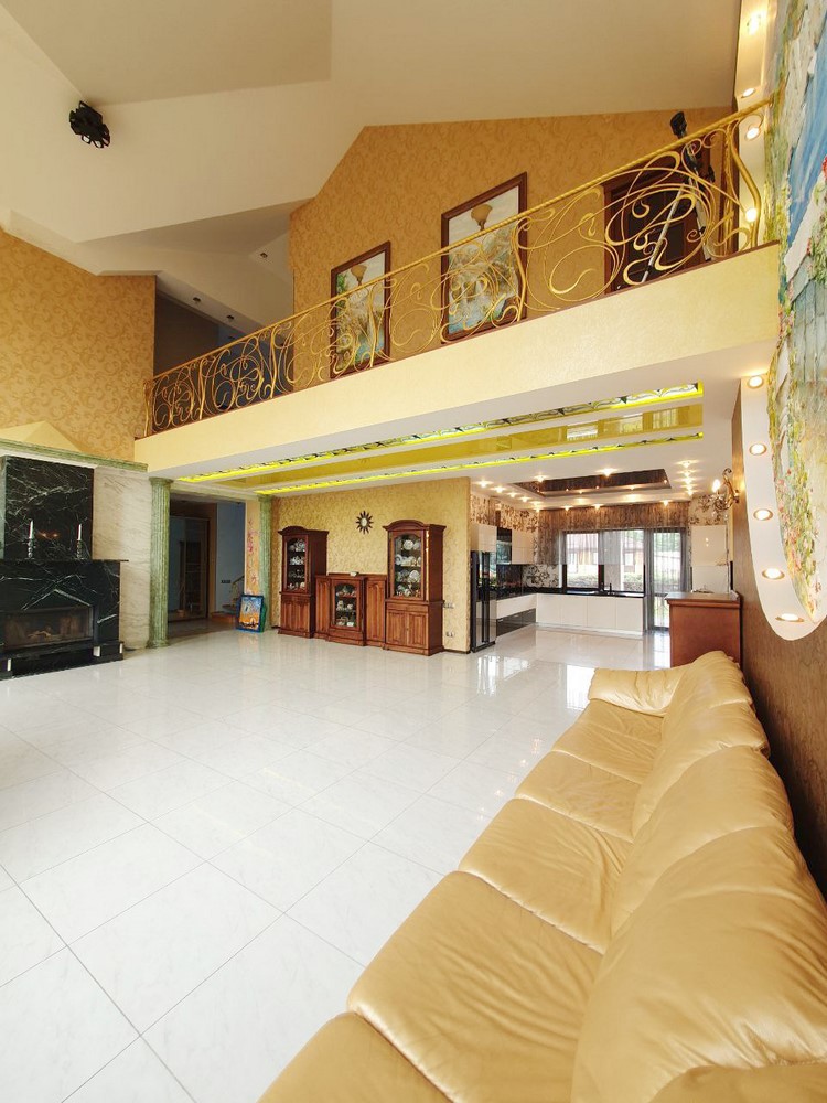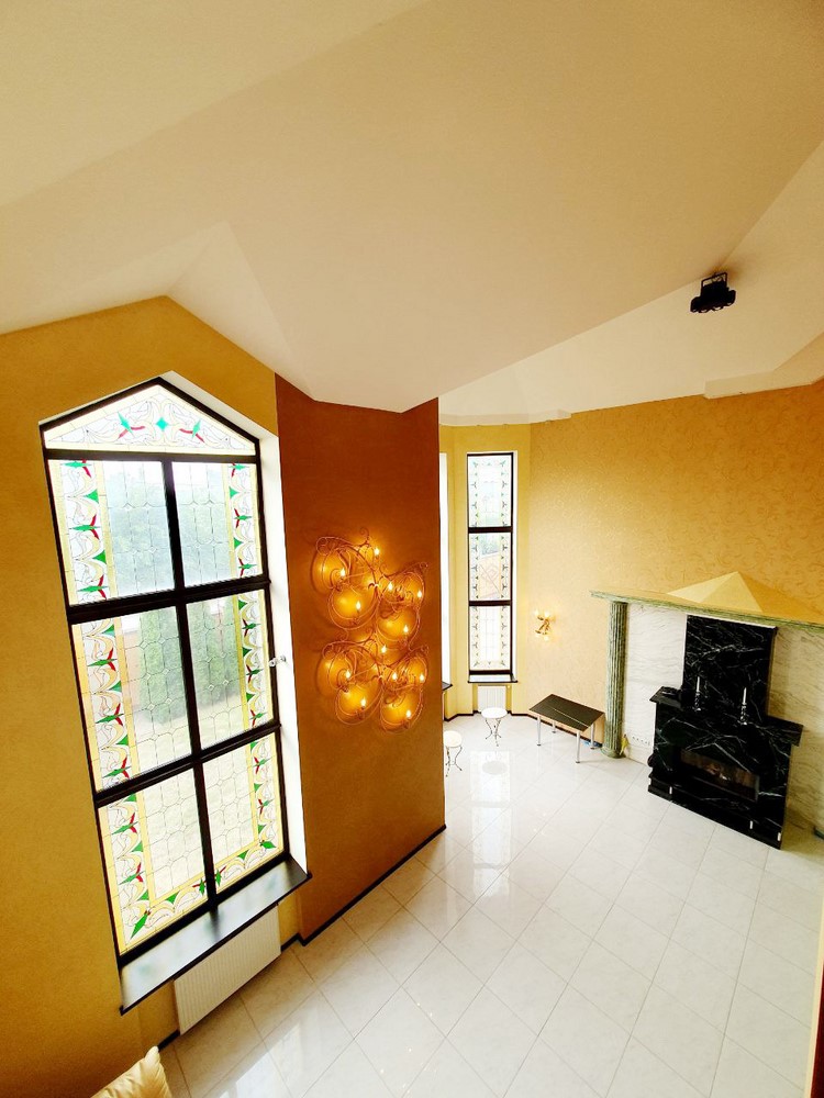 360м.кв. 2-х этажный + подвальная часть + гараж. Стены кирпич, окна металлопластиковые, крыша метало черепица. Планировка: 1-й этаж: огромная гостиная с двойным светом высотою потолков 8м. гостевая спальня, санузел, кухня с выходом на террасу, гараж, топочная. 2-й этаж: 2 спальни, санузел, кабинет, из мастер спальни имеется выход на собственную открытую террасу с видом на участок. Большой функциональный подвал с высокими потолками. Дом сохранился в ухоженном состоянии не смотря на возраст. Встроенная мебель с бытовой техникой, действующий камин, мягкая мебель и многое другое. Дом строился для себя !