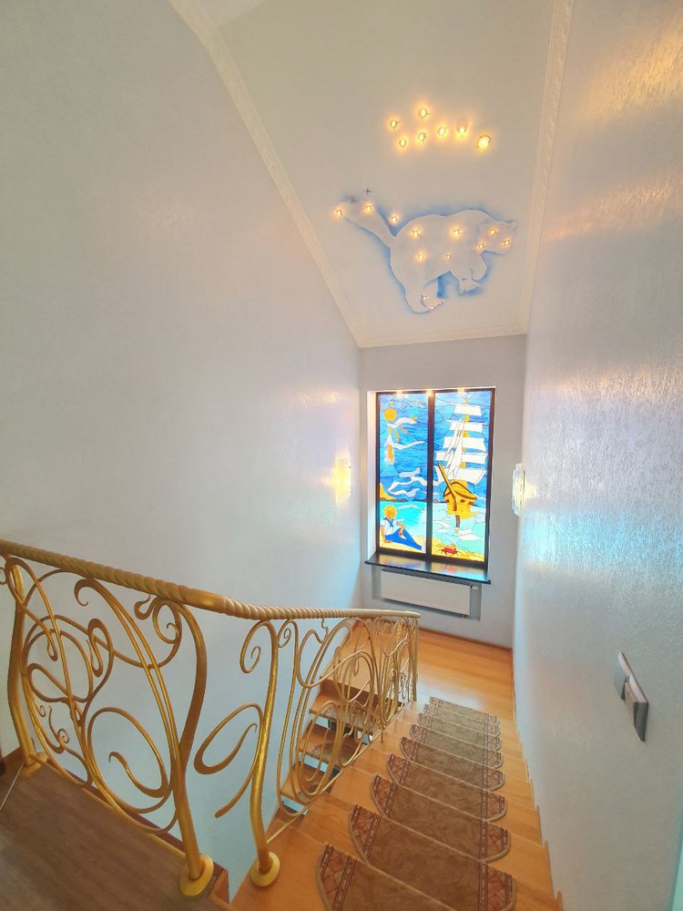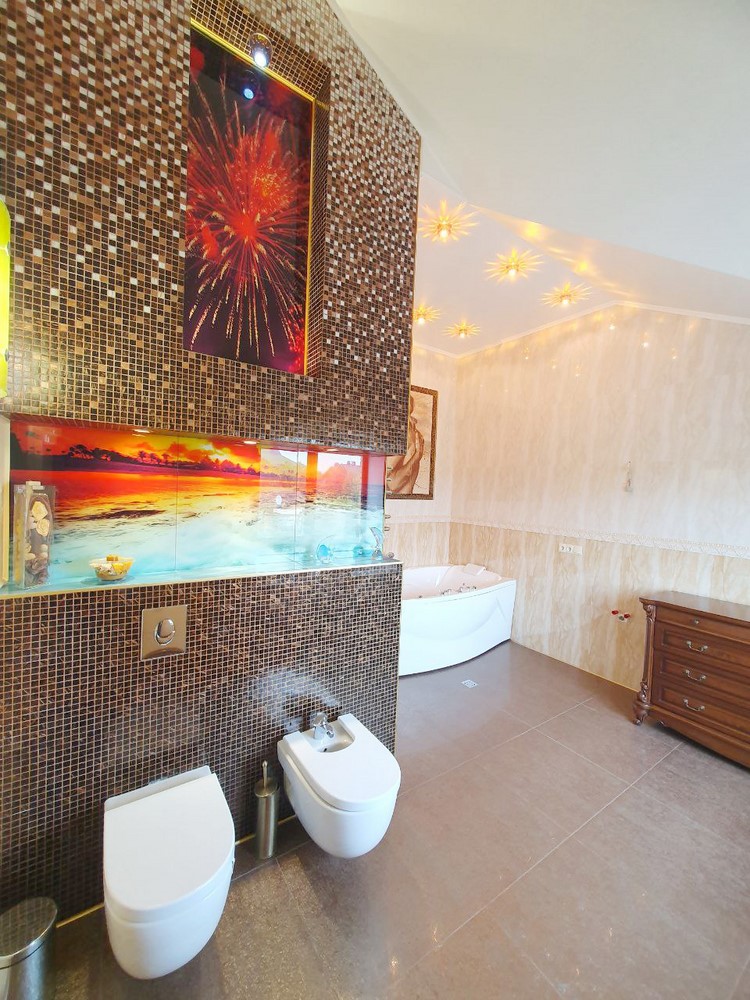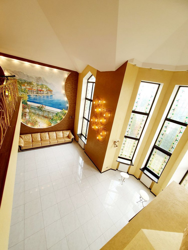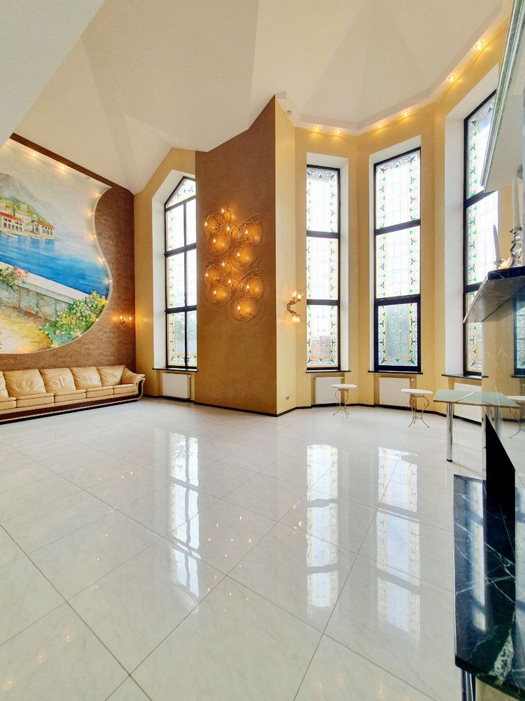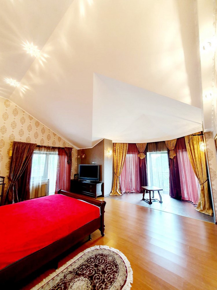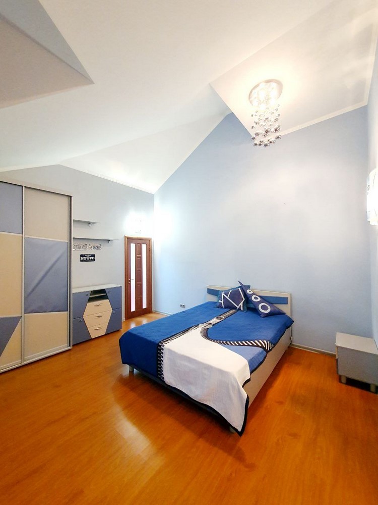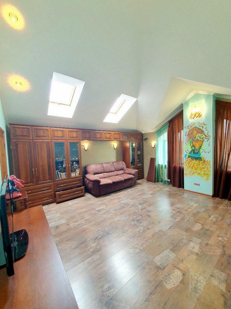 360м.кв. 2-х этажный + подвальная часть + гараж. Стены кирпич, окна металлопластиковые, крыша метало черепица. Планировка: 1-й этаж: огромная гостиная с двойным светом высотою потолков 8м. гостевая спальня, санузел, кухня с выходом на террасу, гараж, топочная. 2-й этаж: 2 спальни, санузел, кабинет, из мастер спальни имеется выход на собственную открытую террасу с видом на участок. Большой функциональный подвал с высокими потолками. Дом сохранился в ухоженном состоянии не смотря на возраст. Встроенная мебель с бытовой техникой, действующий камин, мягкая мебель и многое другое. Дом строился для себя !