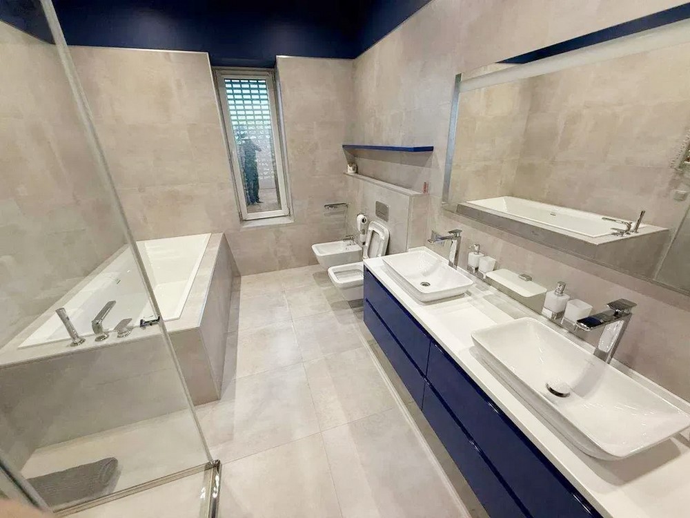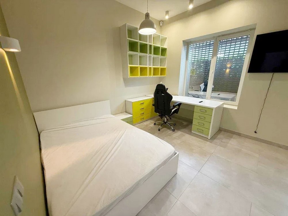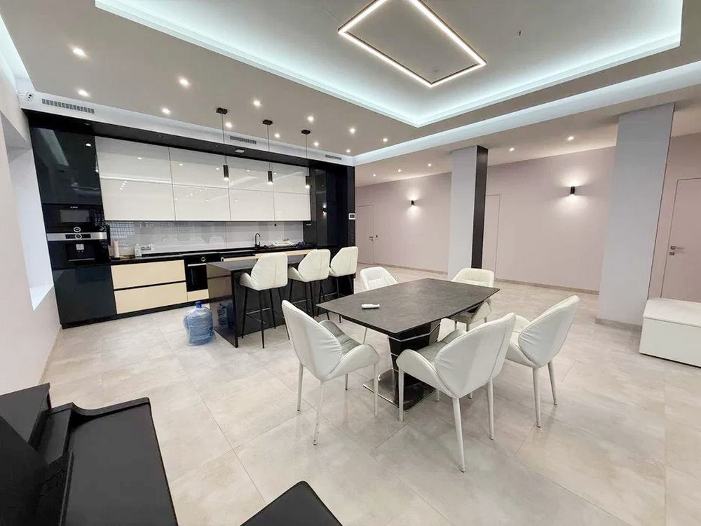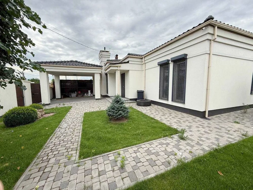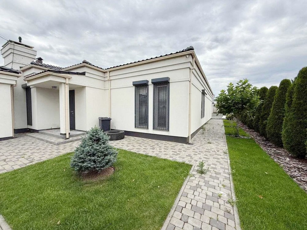 165м.кв.1-но этажный, стены газобетон, металлопластиковые окна + ролеты, крыша натуральная керамическая, газ, вода городская, теплые полы, солнечные панели, интернет, видеонаблюдение и так далее... Планировка: Кухня – студия с выходом на террасу и бассейн, мастер спальня с двумя гардеробными, детская спальня, кабинет, санузел, топочная. В доме выполнен современный очень качественный ремонт от известных мировых брендов, встроенная мебель и бытовая техника, мягкая мебель.